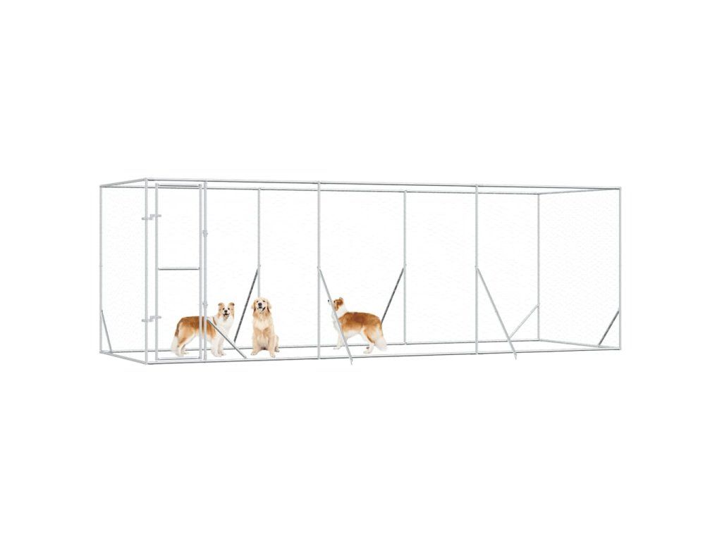 Multidom Vonkajší koterec pre psov strieborný 6x2x2 m pozinkovaná oceľ
