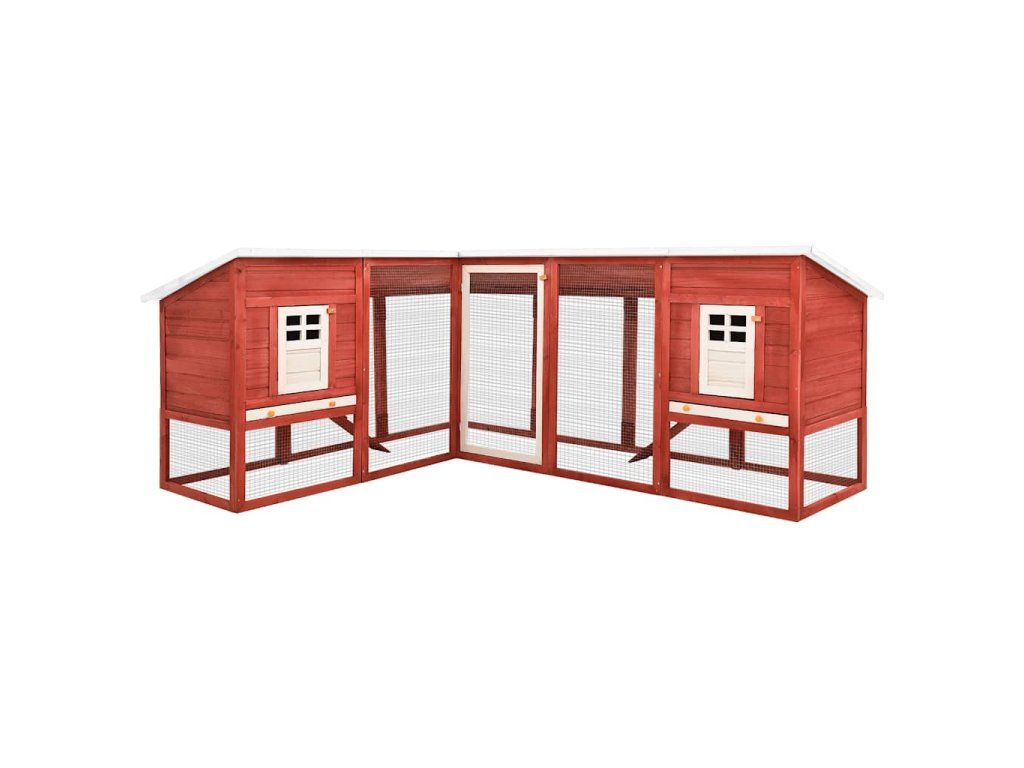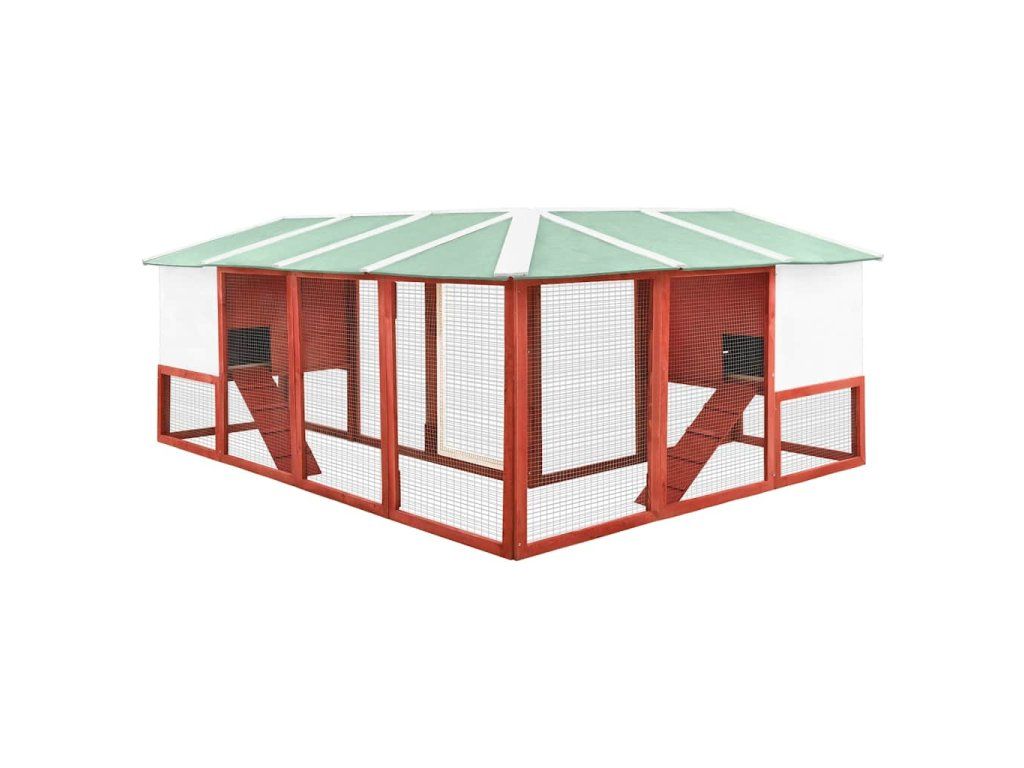 Multidom Vonkajšia králikáreň s výbehom červeno-biela masívne jedľové drevo