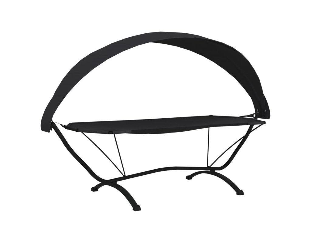 Multidom Vonkajšia posteľ so strieškou, čierna, oceľ a oxfordská látka