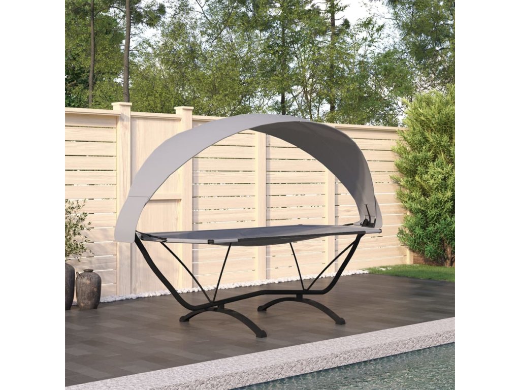 Multidom Vonkajšia posteľ so strieškou, sivá, oceľ a oxfordská látka