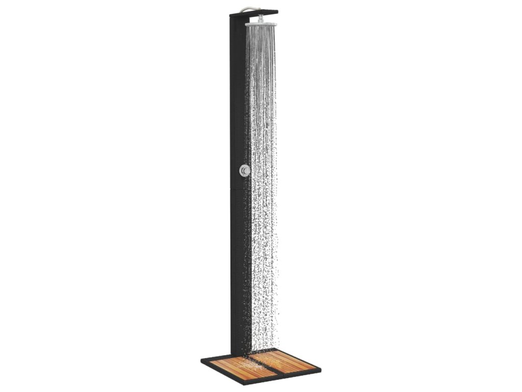 - Drevený lamelový podstavec: Vďaka podstavcu z akáciového dreva je vonkajšia sprcha stabilná a poskytuje bezpečné miesto na státie počas sprchovania. Okrem toho lamelová základňa zabraňuje hromadeniu vody a chráni vaše nohy pred blatom.