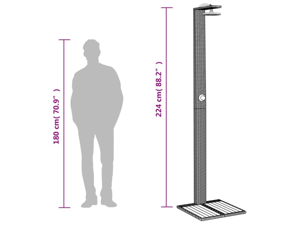 - Štýlové a moderné: Vďaka svojmu nadčasovému dizajnu vyžaruje bazénová sprcha rustikálny šarm a bude pútavým doplnkom vašej záhrady alebo dvora.
