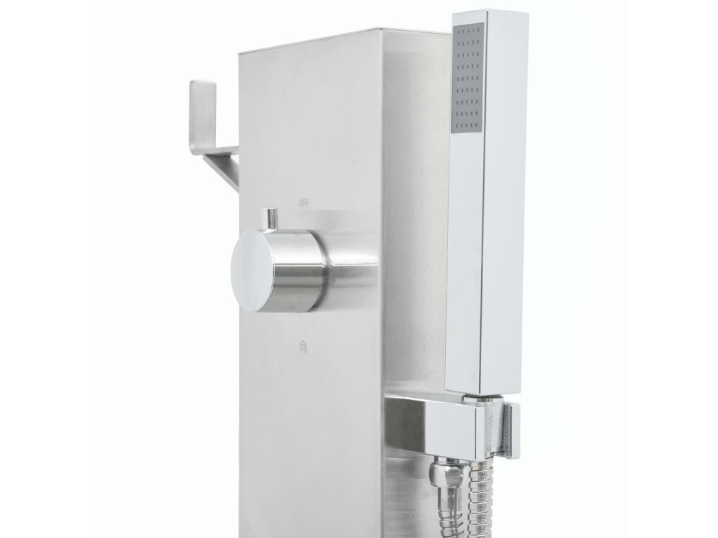 Záhradná sprcha je vyrobená z odolnej nehrdzavejúcej ocele s brúsenou povrchovou úpravou, vďaka čomu je odolná voči poveternostným vplyvom. Batéria je tiež doplnená ručnou sprchou, ktorú určite oceníte pri prácach v záhrade, zalievaní alebo rýchlej sprche. Je tiež vybavená držiakom pre jednoduché zavesenie hadice na vodu.
