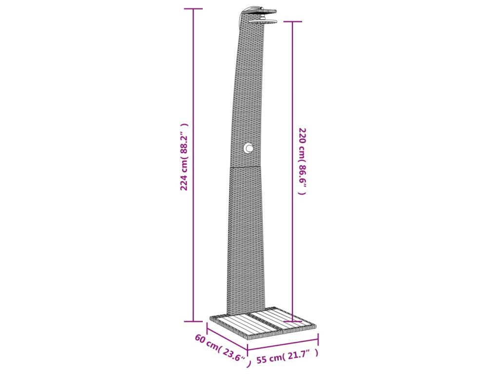 Multidom Vonkajšia sprcha sivý 55x60x224 cm polyratan a akácia
