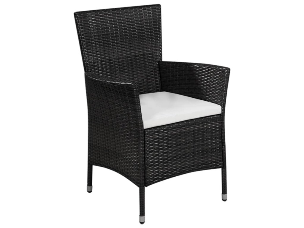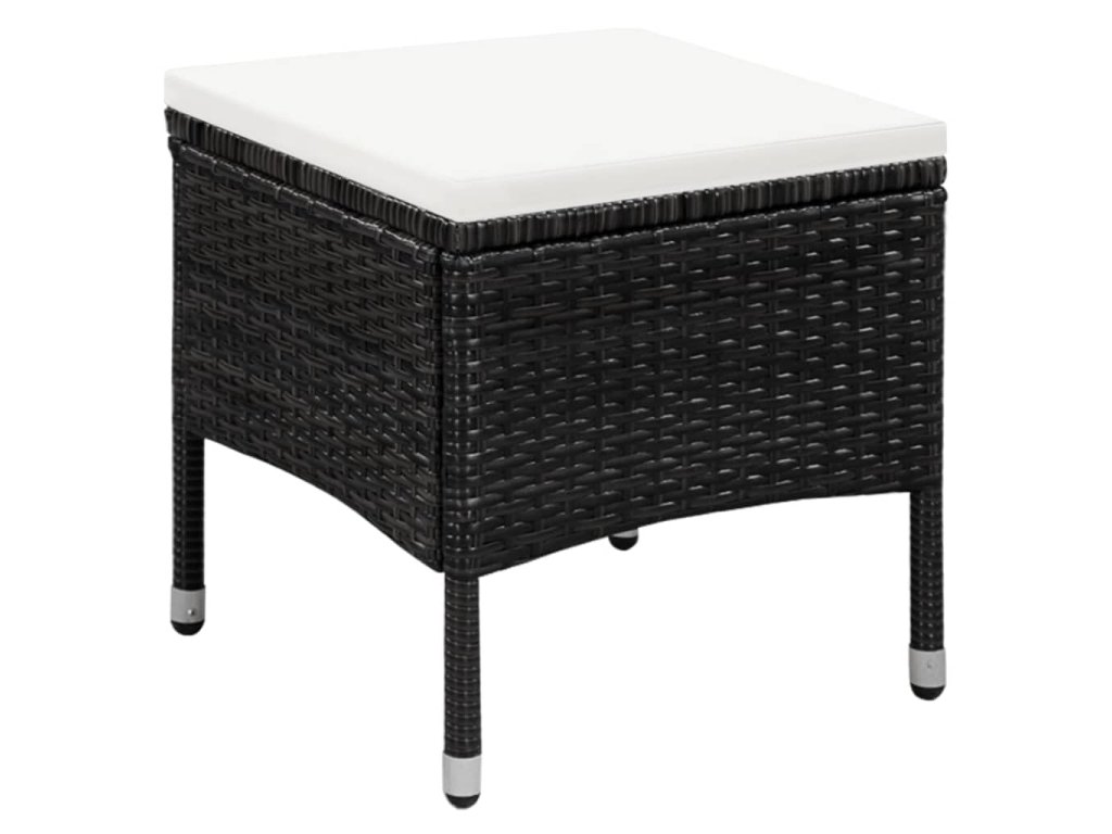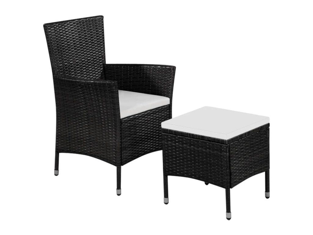 Multidom Vonkajšia stolička a taburetka s podložkami, polyratan, čierne