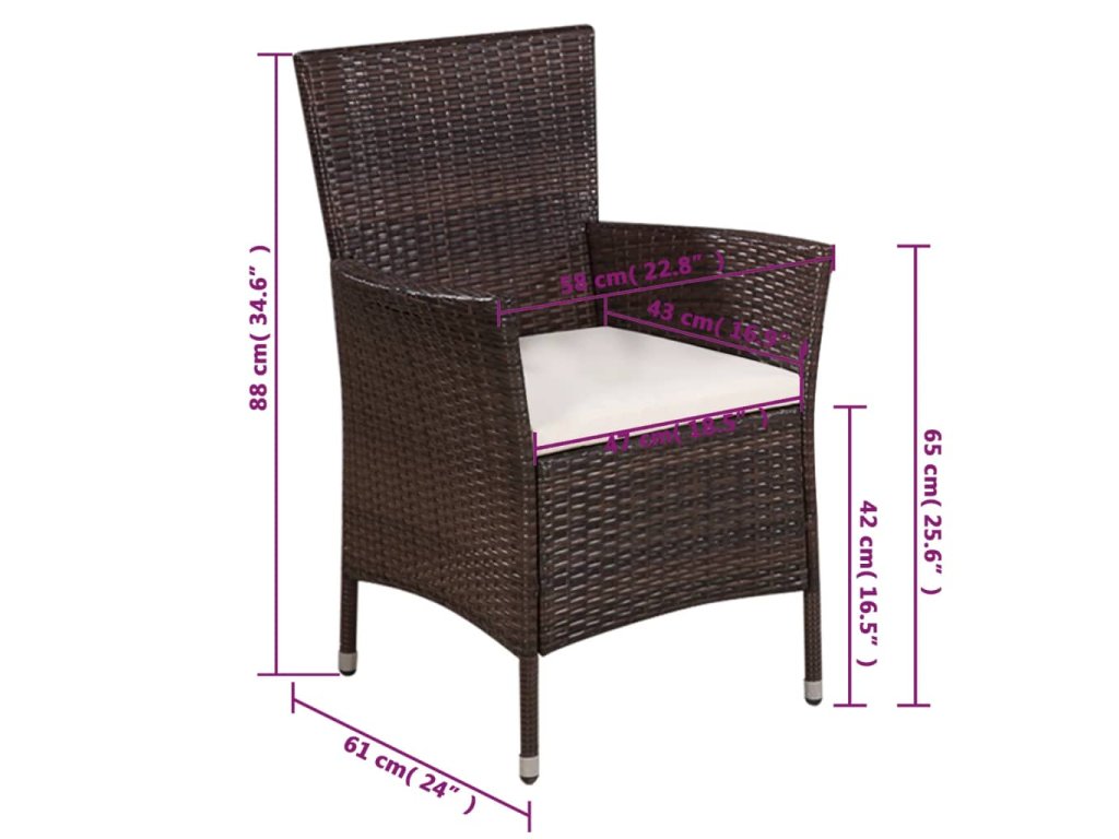 Táto nádherná súprava polyratanového záhradného nábytku pozostáva z 1 jedálenskej stoličky, 1 taburetky a 2 odnímateľných podložiek na sedadlo a stane sa stredobodom vašej záhrady či terasy!