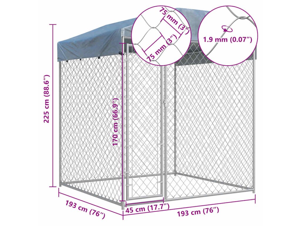 Multidom Vonkajšia voliéra pre psy so strechou 193x193x225 cm