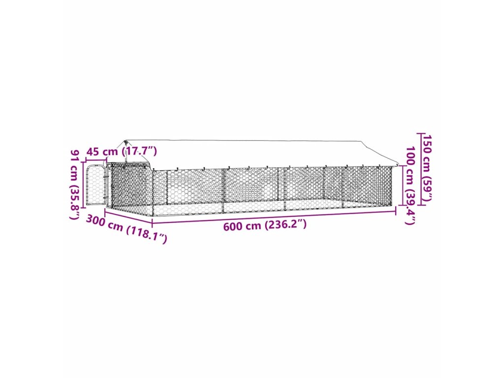 Multidom Vonkajšia voliéra pre psy so strechou 600x300x150 cm