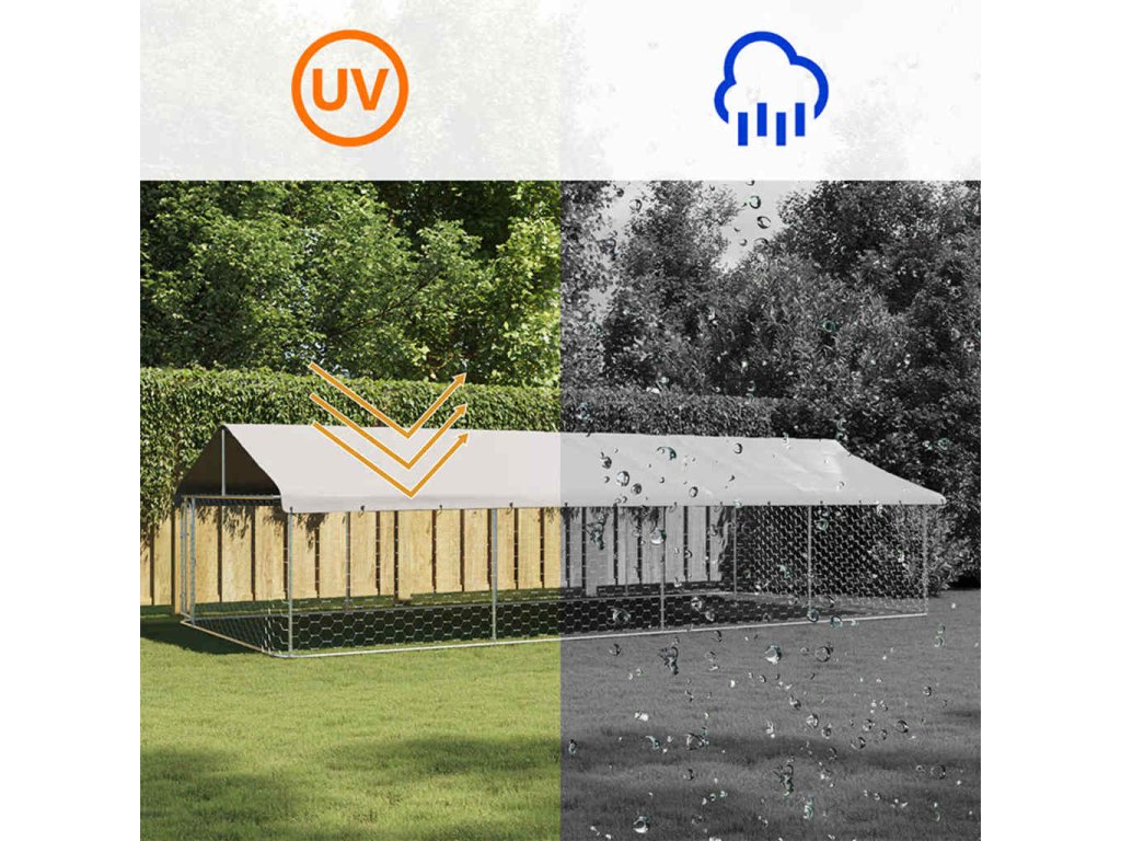 Tento veľký koterec poskytuje dostatok miesta na cvičenie psov a jeho steny sú tvorené pletivom, ktoré sa postará o to, aby z neho pes neušiel a aby nedošlo k nechceným úrazom a tiež o to, aby doň prúdilo dostatočné množstvo vzduchu. Vďaka stabilnej a odolnej konštrukcii z pozinkovanej ocele je táto kvalitná voliéra trvácna a má dlhú životnosť. Súčasťou balenia je aj strecha vyrobená zo 100% polyetylénu, ktorá je odolná voči ohňu, UV žiareniu a poveternostným vplyvom v podobe ostrého slnka, dažďa, snehu a podobne. Dvierka s pántmi poskytnú vašim psom vysokú bezpečnosť.