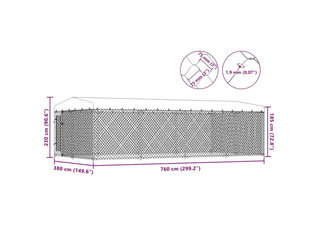 Multidom Vonkajšia voliéra pre psy so strechou 7,6x3,8x2,3 m