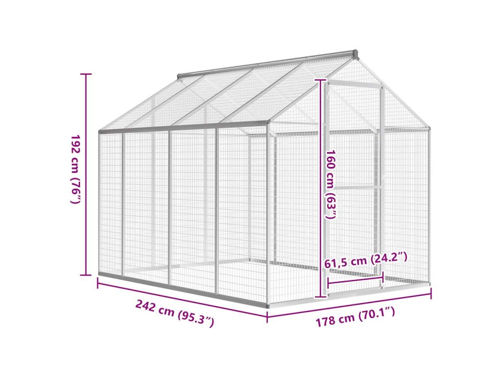 Multidom Vonkajšia vtáčia voliéra, hliníková 178x242x192 cm
