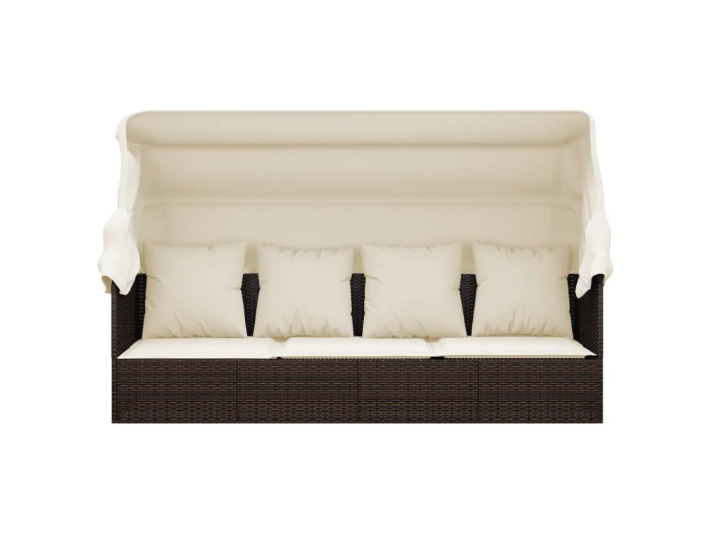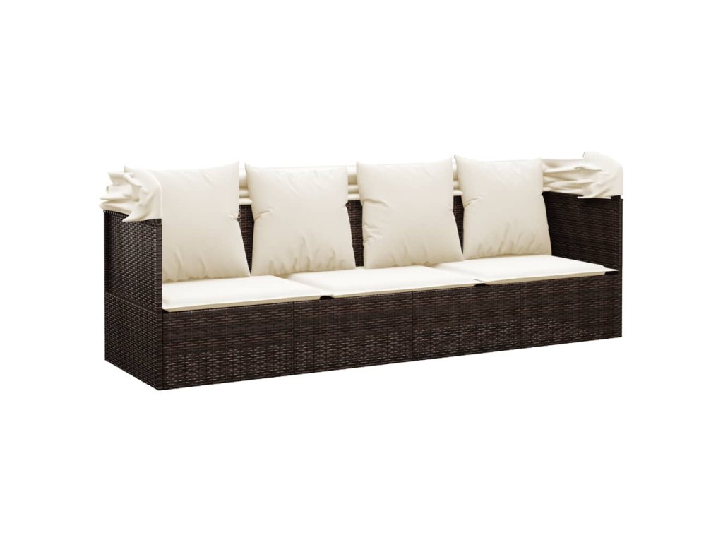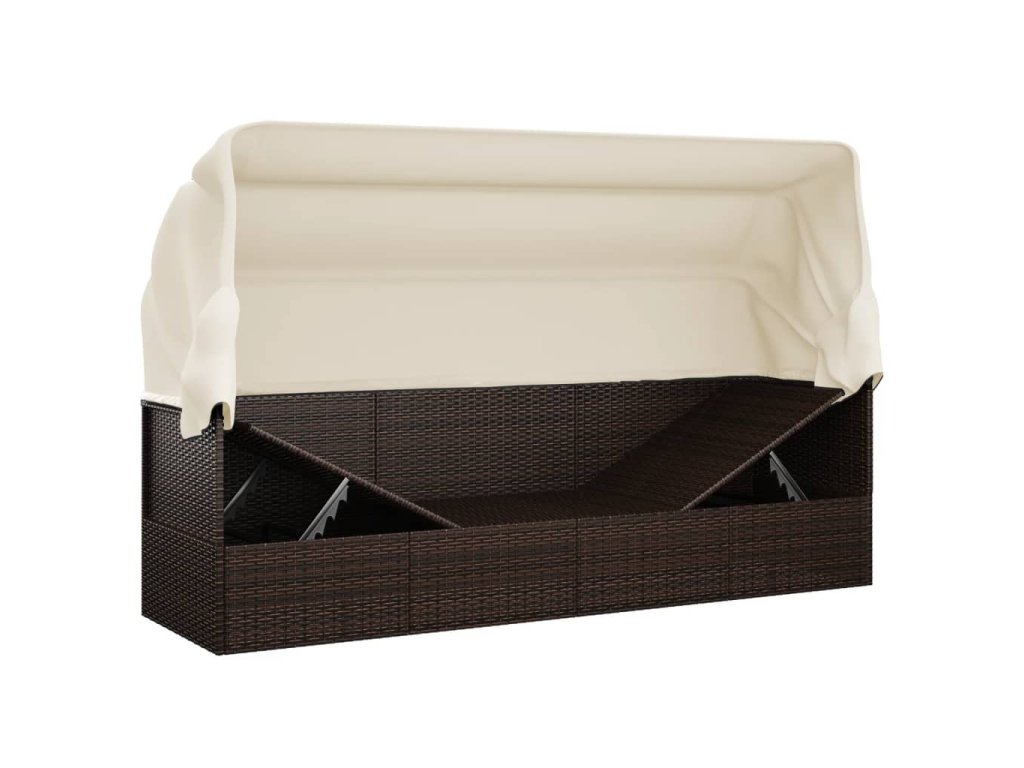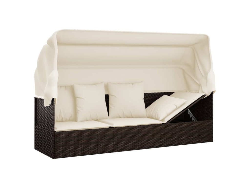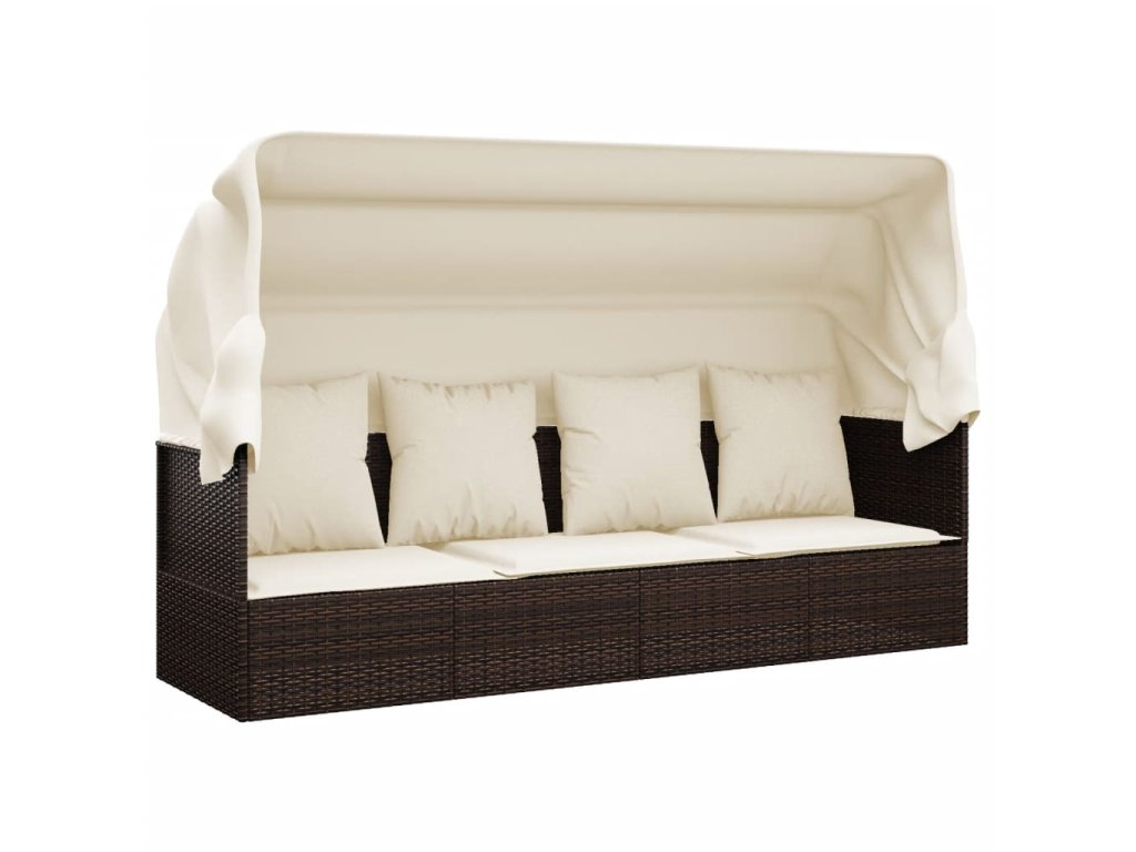 Multidom Vonkajšie lehátko so strechou a vankúšmi hnedé polyratan