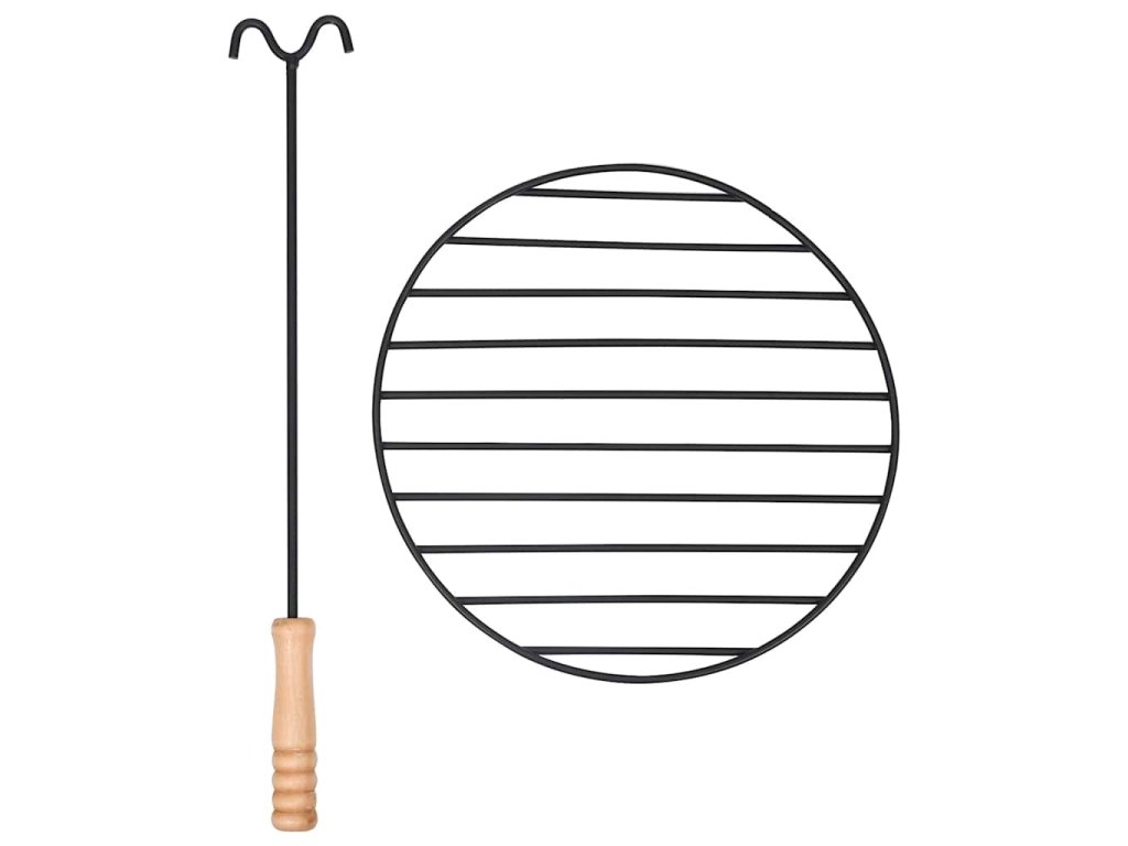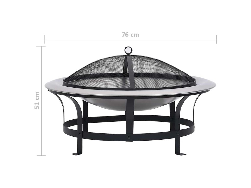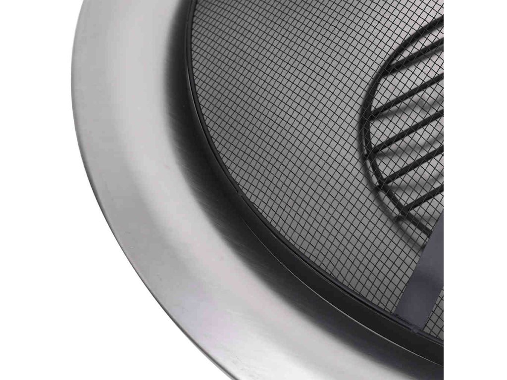 Táto misa na oheň je vyrobená z ocele s tepelne odolnou povrchovou úpravou a nehrdzavejúcej ocele. Je odolná voči hrdzi, ľahká a zároveň odolná voči poveternostným vplyvom pre dlhodobé vonkajšie používanie. Sieťová mriežka zabraňuje vyletovaniu iskier, žeravých uhlíkov a nečistôt, zatiaľ čo kutáč s drevenou rukoväťou vám umožní bezpečne nadvihnúť poklop a upraviť drevo alebo drevené uhlie.