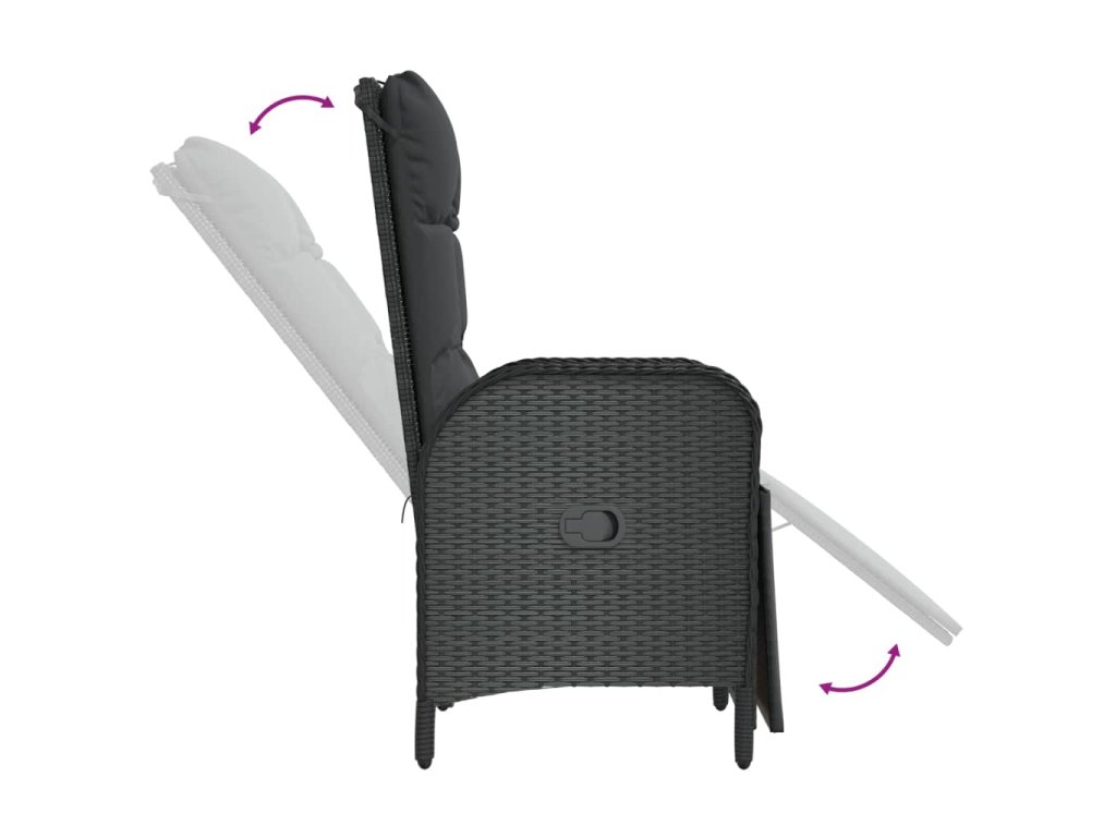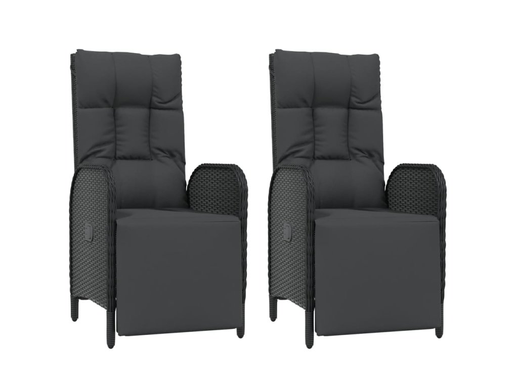 Multidom Vonkajšie polohovacie kreslá s vankúšmi 2 ks polyratan čierne