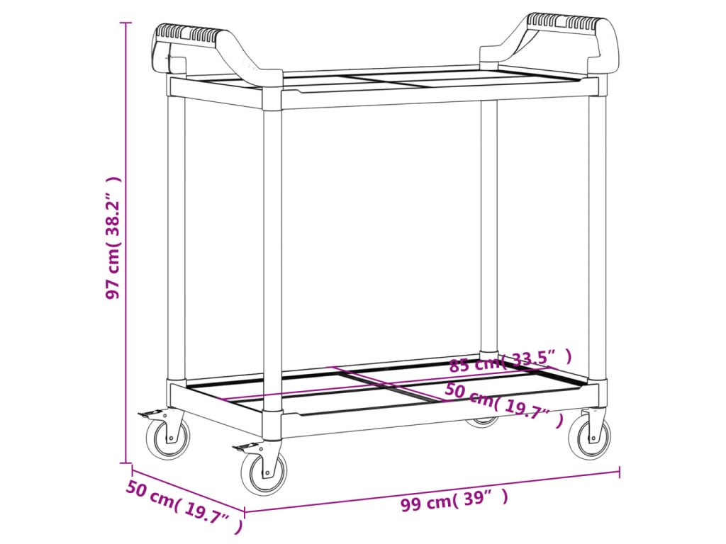 Multidom Vozík s 2 poschodiami čierny 99x50x97 cm hliník