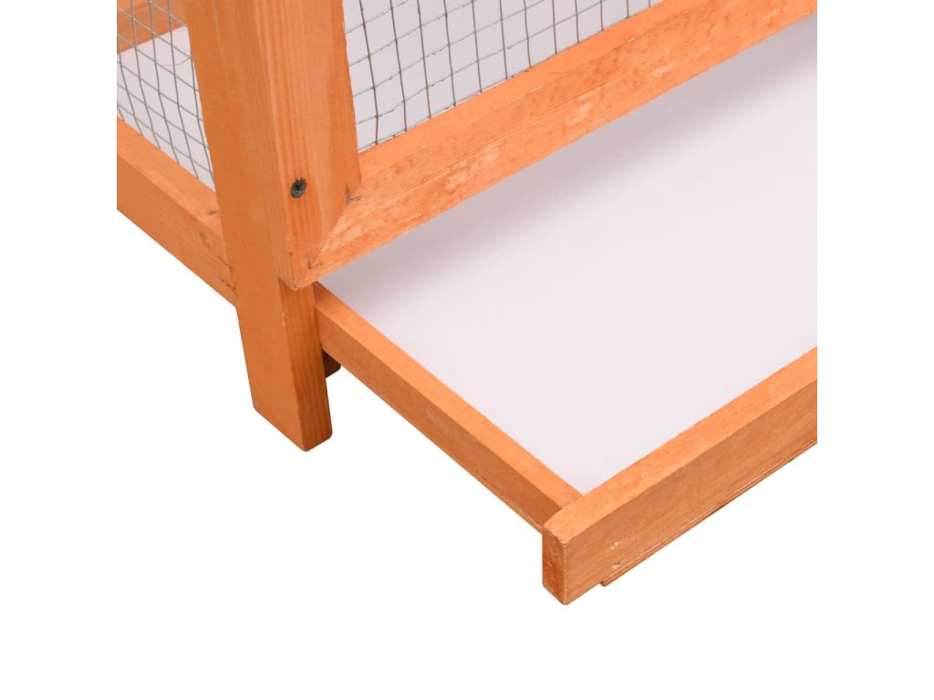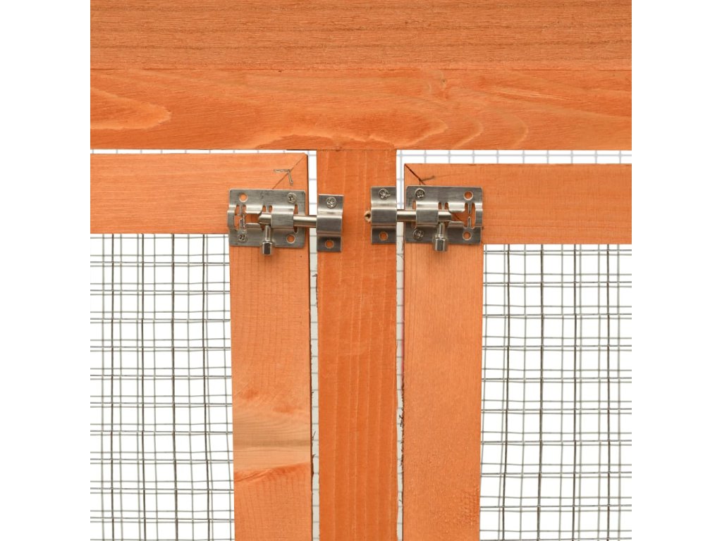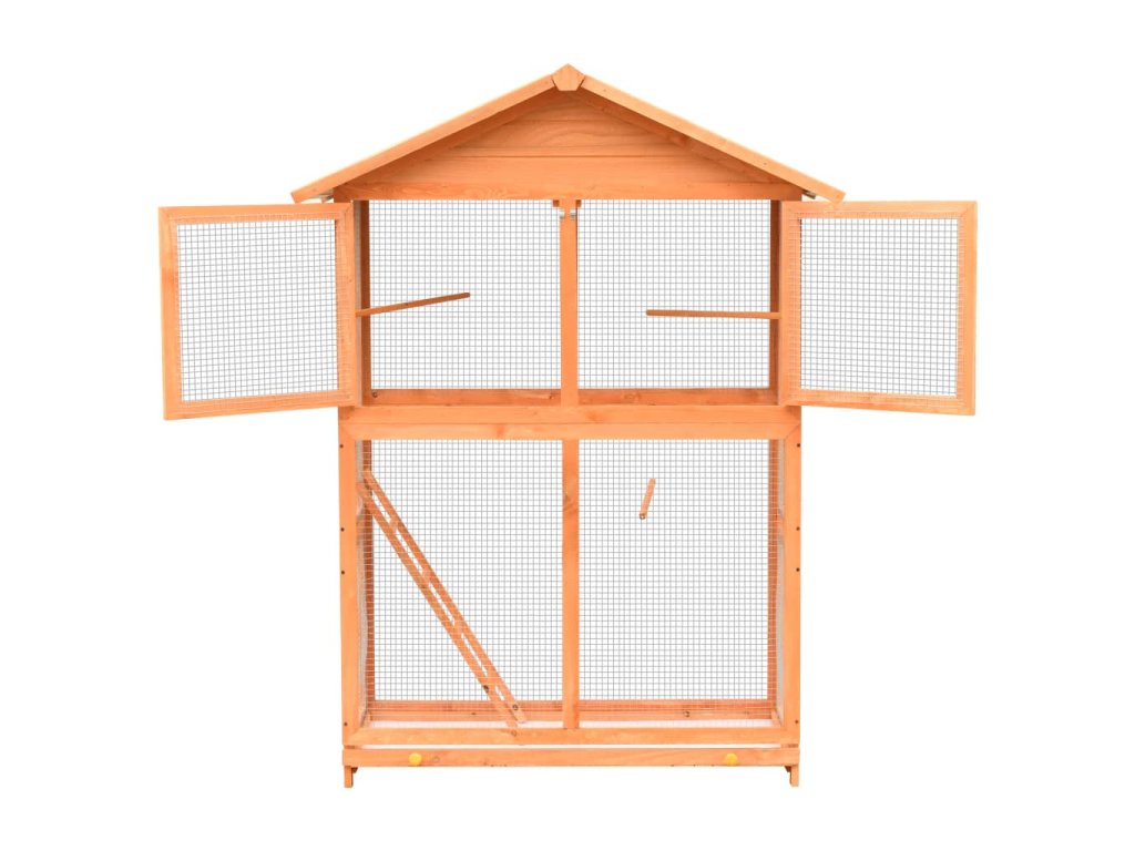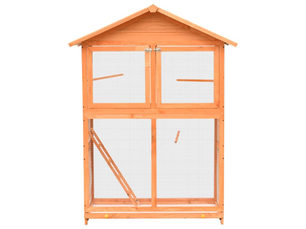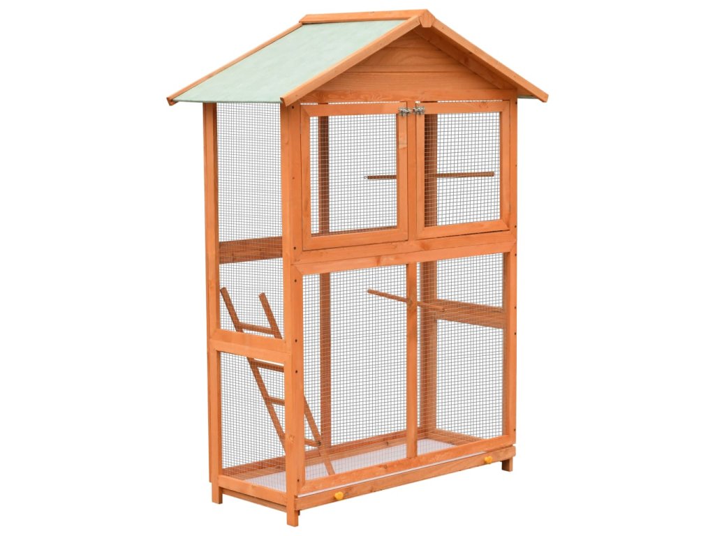 V tejto vysokokvalitnej klietke pre vtáky je dostatok priestoru na pohyb a pevné pletivo zo železných drôtov po celom obvode sa postará o to, aby nedochádzalo k nehodám a nežiaducemu správaniu. Konštrukcia zo železného drôteného pletiva vám navyše umožní vtáky kedykoľvek skontrolovať a zabezpečí im dobrý výhľad a neustále prúdenie čerstvého vzduchu. Vonkajšia vtáčia klietka má rám z dreveného masívu, vďaka čomu je skutočne pevná a trvácna. Strieška je pokrytá zelenou vodoodolnou látkou, ktorá vtáky ochráni pred dažďom. Rebrík vtákom umožní jednoducho prechádzať hore a dole. Vďaka vyťahovaciemu dnu v spodnej časti sa klietka pre vtáky dá bez problémov vyčistiť.