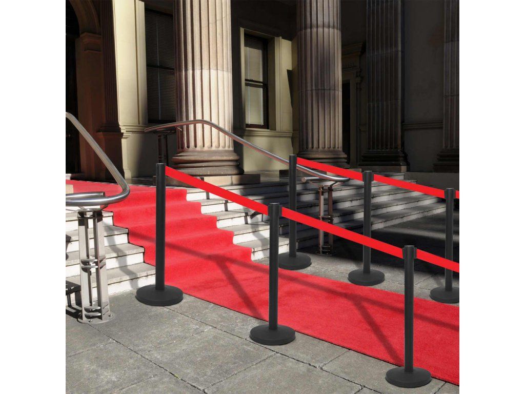 Stĺpiky sú vyrobené z práškovaného železa a sú antikorózne, čo znamená, že nie je ľahké ich poškriabať a zdeformovať, vďaka čomu budú ideálne pre dlhodobé používanie. Každá základňa je veľmi stabilná voči vetru. Kryt základne chráni podlahu pred poškriabaním. Vysúvací popruh je navyše vybavený uzamykateľnými otočnými koncami a štvorsmerným koncovým systémom, ktorý bude vyhovovať vašim špecifickým potrebám.