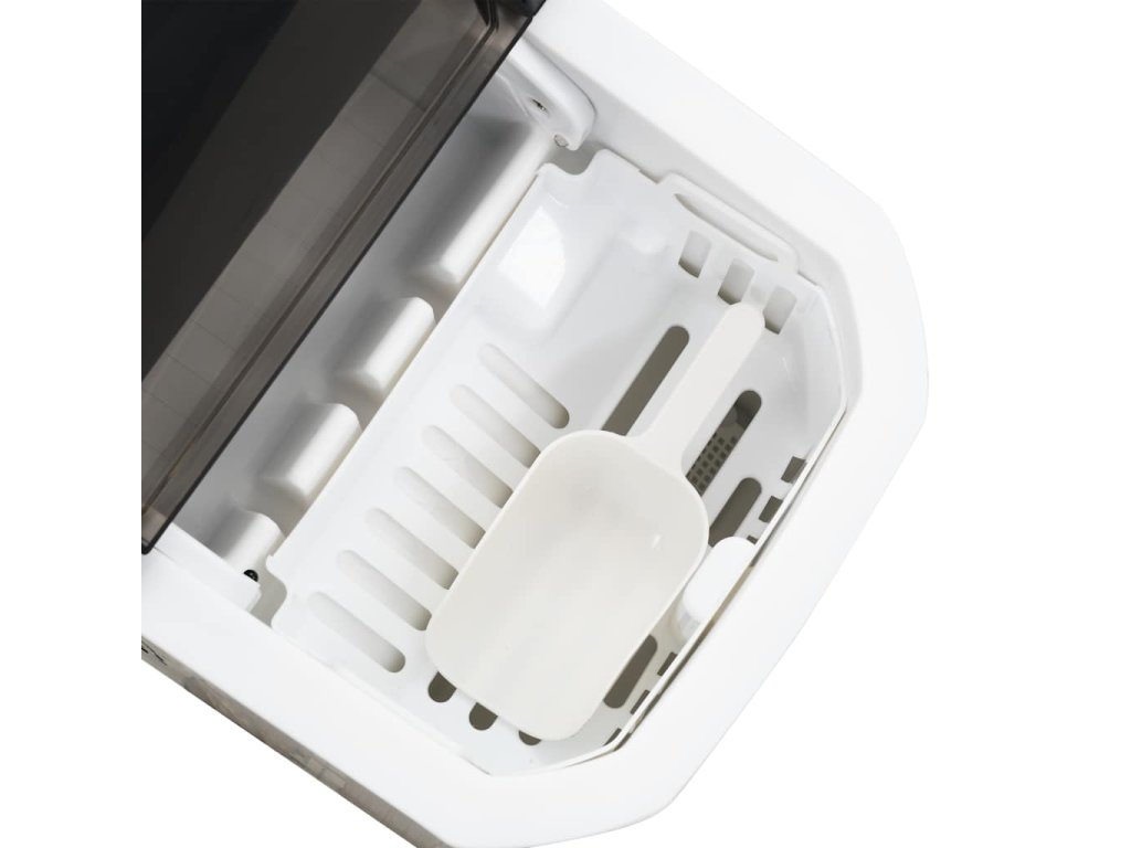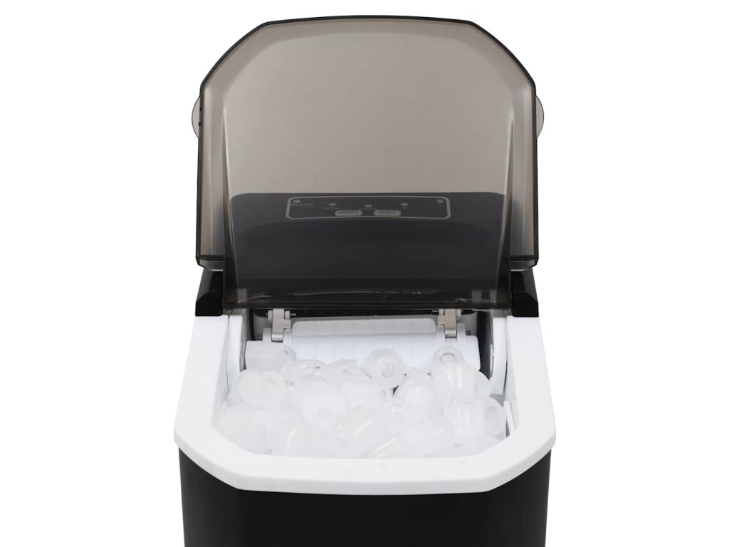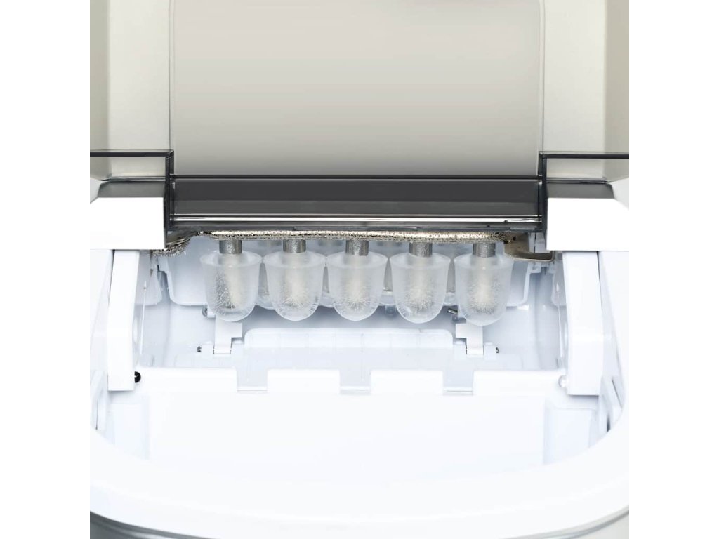 Tento prístroj je schopný vyrobiť až 12-15 kg ľadu denne a 9 kociek ľadu na jeden cyklus. Do vstavaného zásobníka môžete naraz naliať až 1,4 l vody. Tento prístroj môže vyrobiť kocky ľadu rýchlo a skoro bez hluku. Dodáva sa s priehľadným okienkom na poklope a má LED displej, takže môžete vždy sledovať stav kociek ľadu. Prístroj spustí alarm, keď sú kocky ľadu hotové, alebo ak je v ňom nedostatok vody.