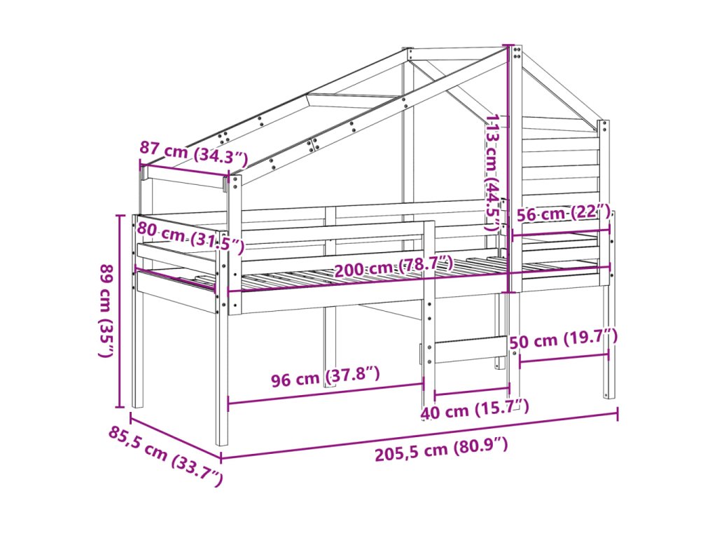 Multidom Vysoká posteľ so strechou 80x200 cm borovicový masív
