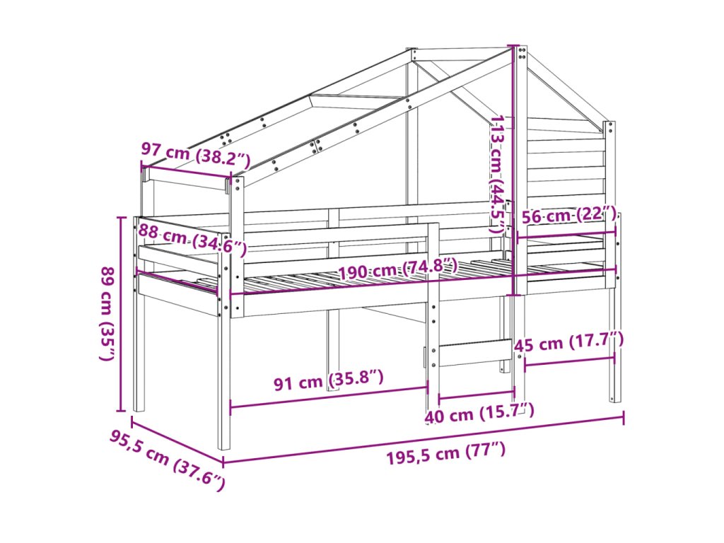 Multidom Vysoká posteľ so strechou voskovo hnedá 90x190cm borovic. masív