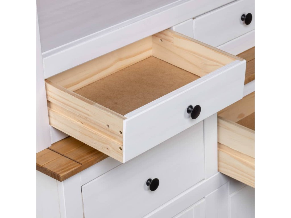 Táto vysoká skrinka je vyrobená z masívneho borovicového dreva. Má rustikálny a trendy dizajn, vďaka čomu bude dekoratívnym a zároveň praktickým doplnkom vo vašej domácnosti.