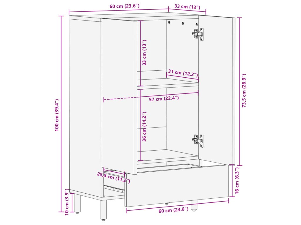 - Celkové rozmery: 60 x 33 x 100 cm (D x Š x V)