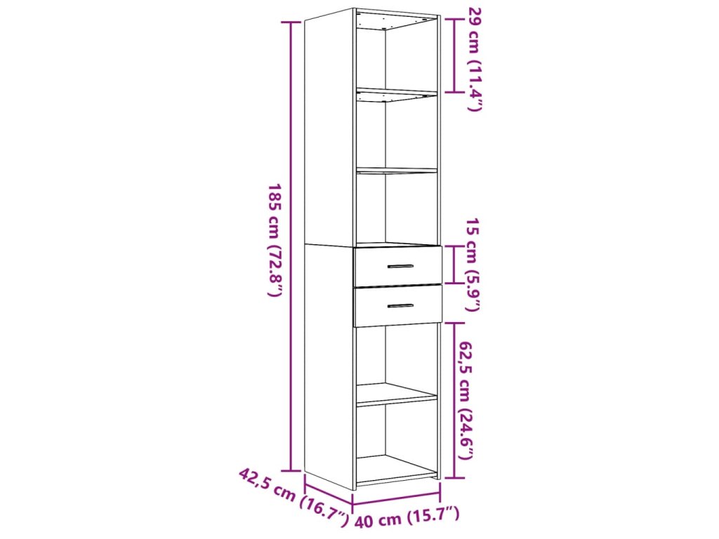 - Rozmery: 40 x 42,5 x 185 cm (Š x H x V)