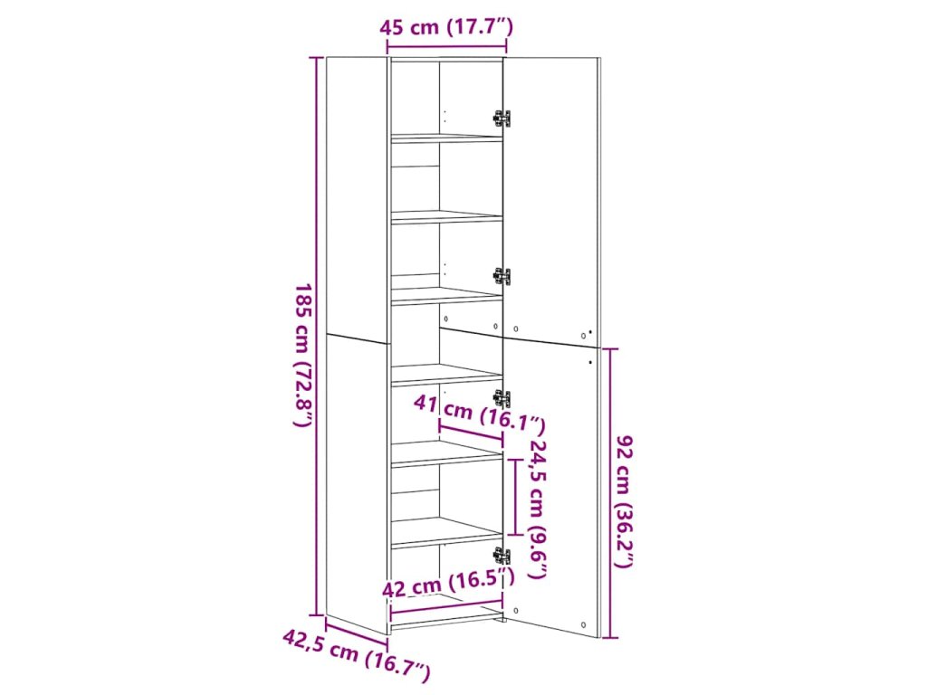- Rozmery: 45 x 42,5 x 185 cm (D x Š x V)