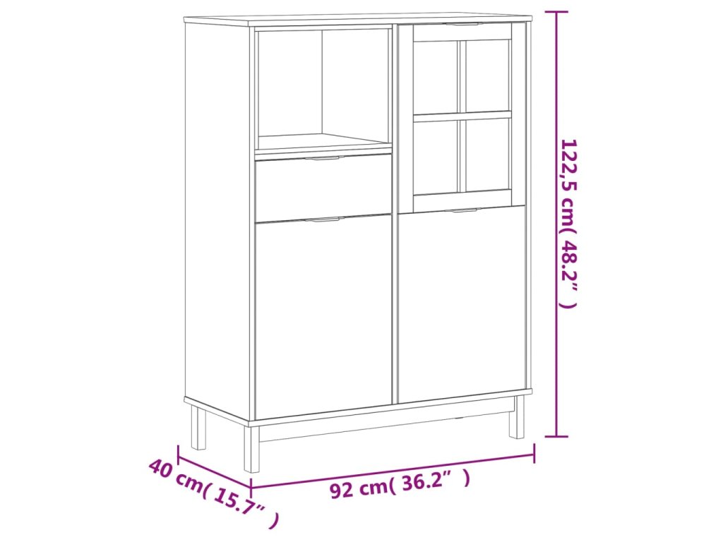 Multidom Vysoká skrinka, sklenené dvierka FLAM 92x40x122,5 cm, borovica