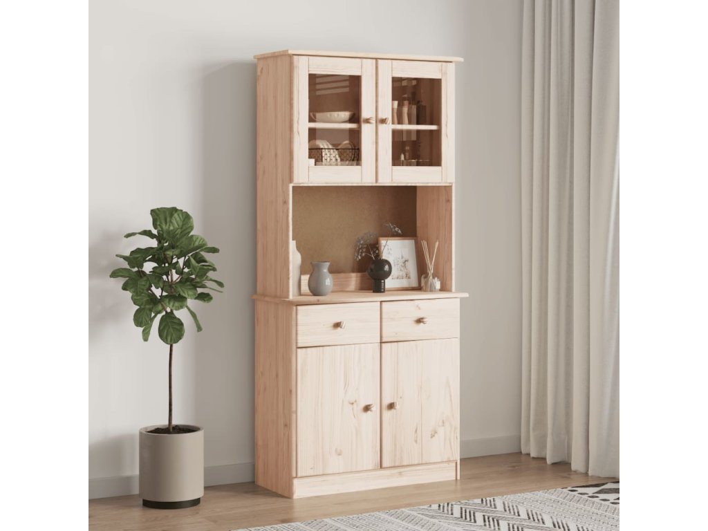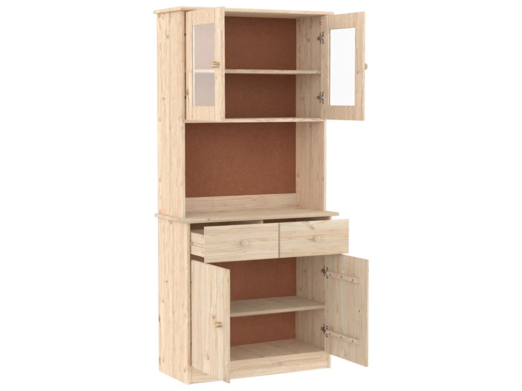 - Dostatok úložného priestoru: Vysoká skrinka s policami, zásuvkami a sklenenými dvierkami ponúka množstvo úložného priestoru a možností vystavenia vašich obľúbených predmetov.
