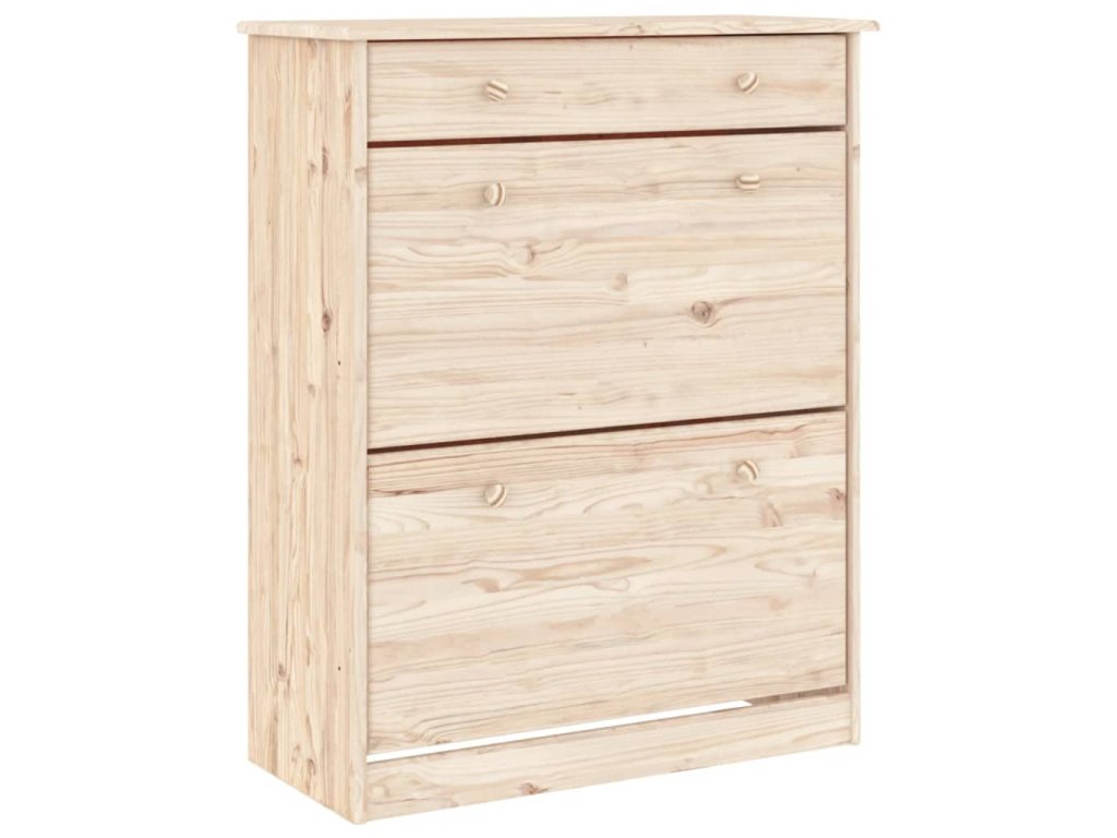 - Borovicový masív: Borovicový masív je krásny prírodný materiál. Borovicové drevo má rovnú kresbu a nachádzajú sa na ňom uzly, ktoré tomuto materiálu dodávajú charakteristický rustikálny vzhľad. Skrinka je vyrobená z masívneho borovicového dreva, a je odolná a pevná.