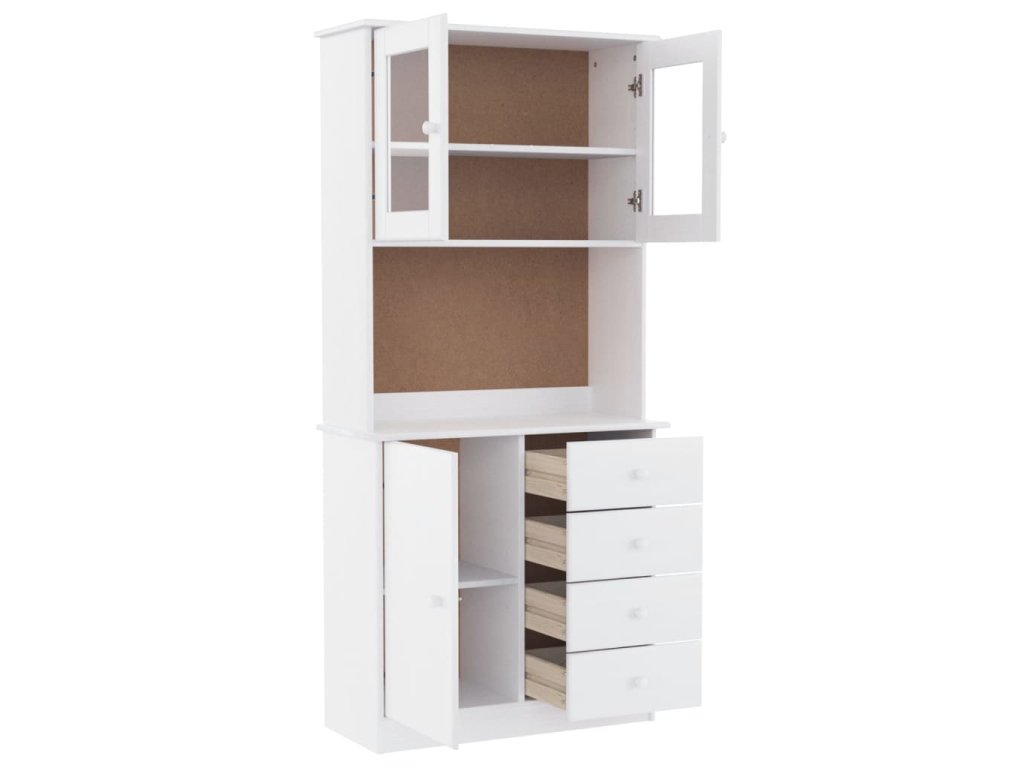 - Dostatok úložného priestoru: Vysoká skrinka s policami, zásuvkami a sklenenými dvierkami ponúka množstvo úložného priestoru a možností vystavenia vašich obľúbených predmetov.