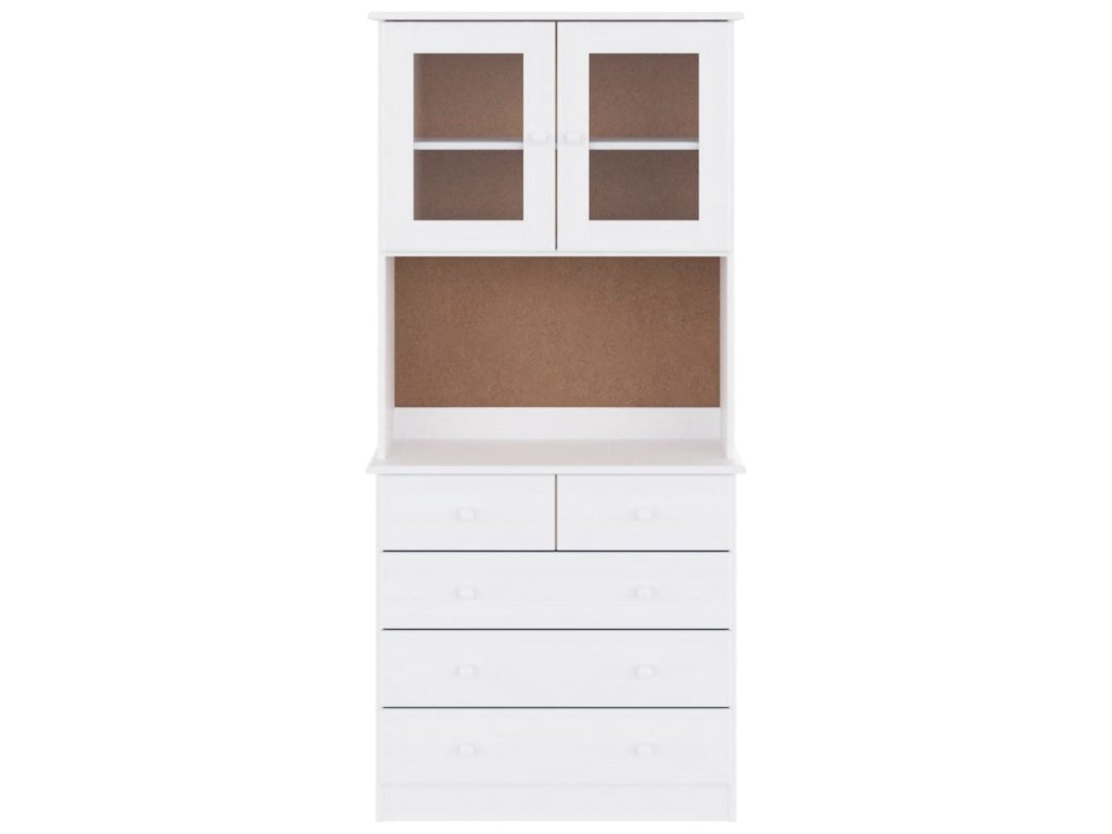 - Dostatok úložného priestoru: Vysoká skrinka s policami, zásuvkami a sklenenými dvierkami ponúka množstvo úložného priestoru a možností vystavenia vašich obľúbených predmetov.