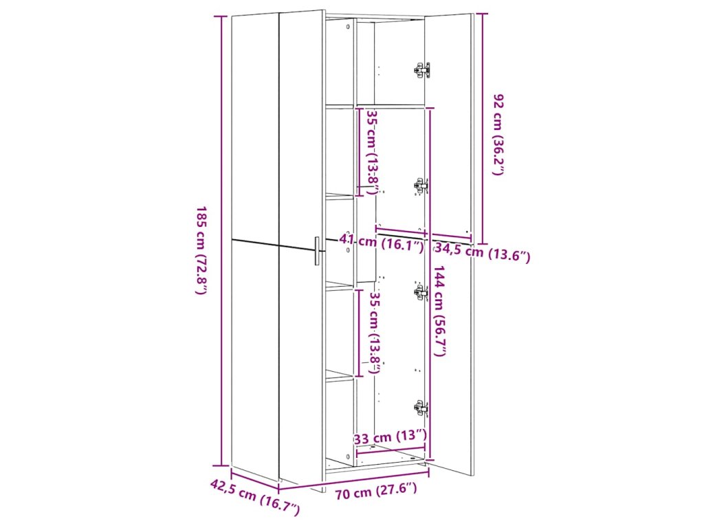 - Rozmery: 70 x 42,5 x 185 cm (D x Š x V)