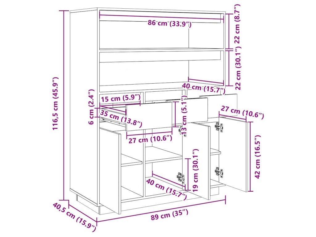 - Rozmery: 89 x 40 x 116,5 cm (Š x H x V)