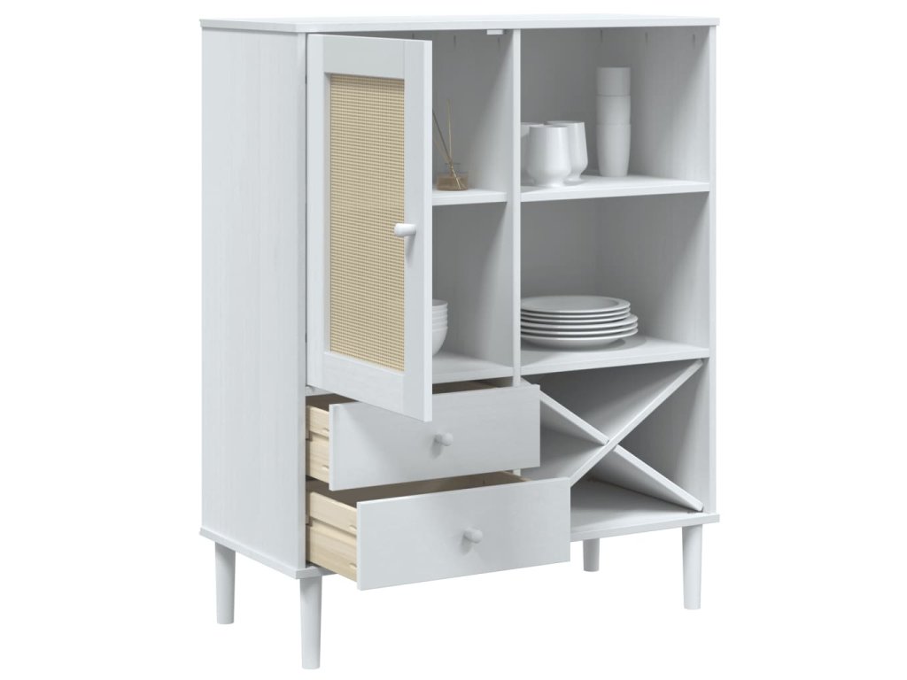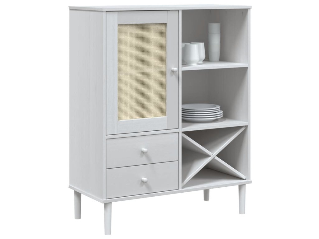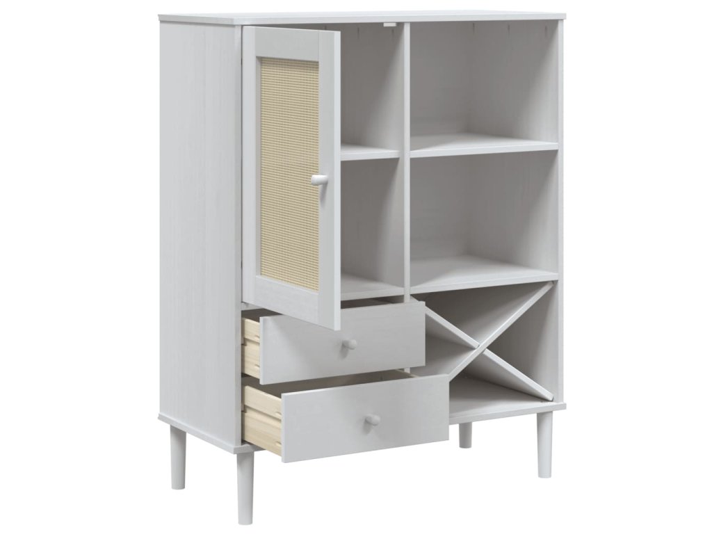 Multidom Vysoká skrinka SENJA, ratanová biela 90x40x112 cm, borovica