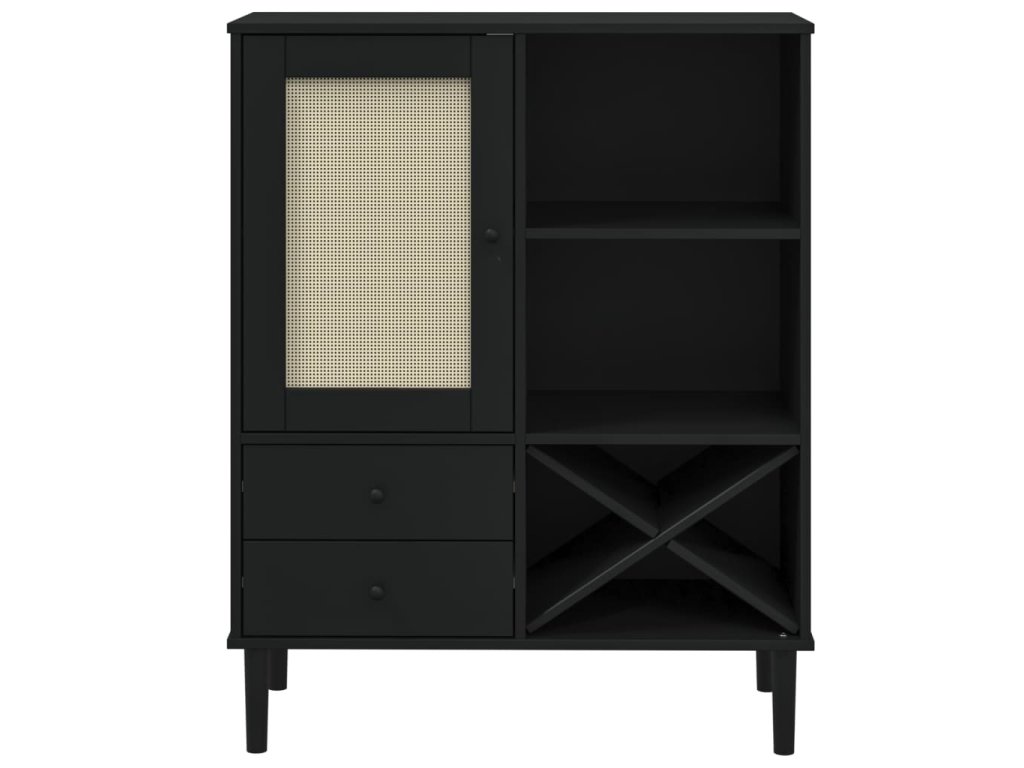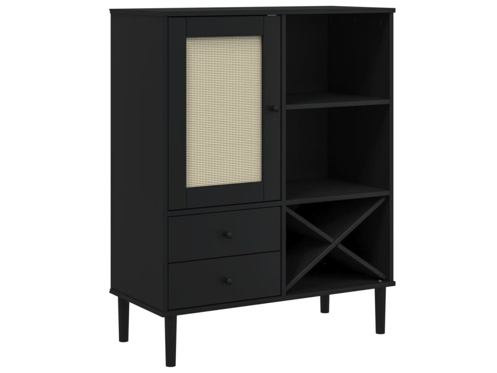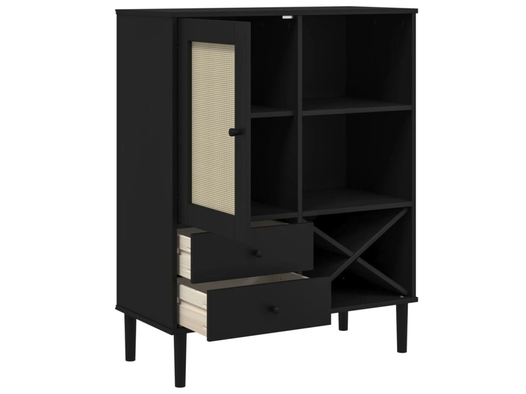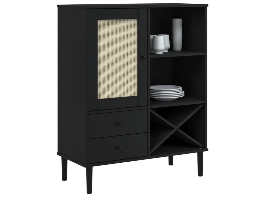 Multidom Vysoká skrinka SENJA, ratanová čierna 90x40x112 cm, borovica