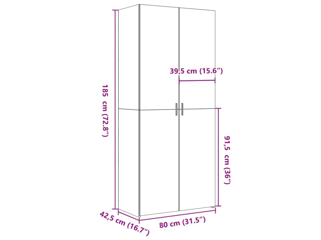 - Rozmery: 80 x 42,5 x 185 cm (D x Š x V)