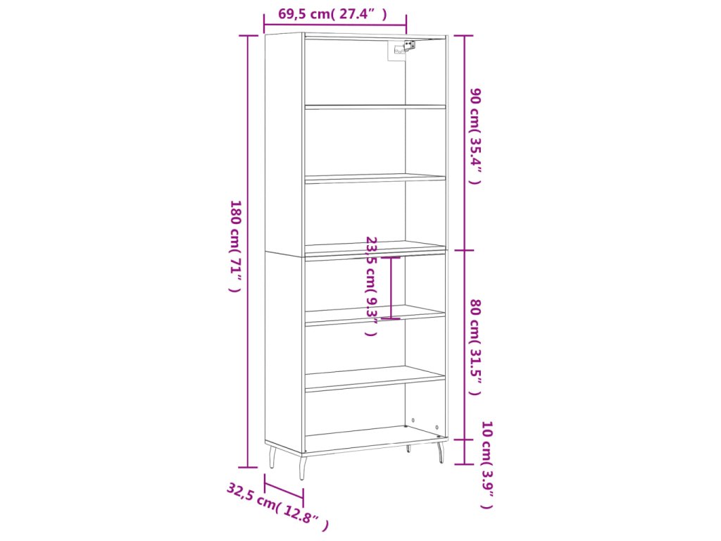 Multidom Vysoká skrinka sivá sonoma 69,5x32,5x180 cm kompozitné drevo