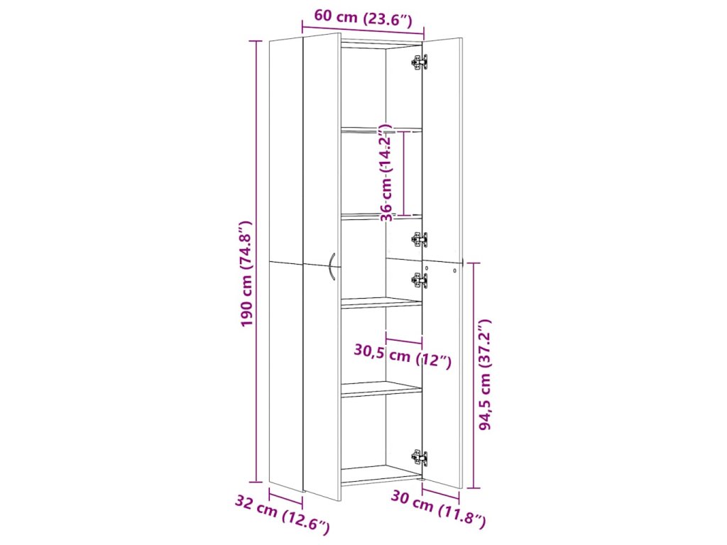 - Rozmery: 60 x 32 x 190 cm (Š x H x V)