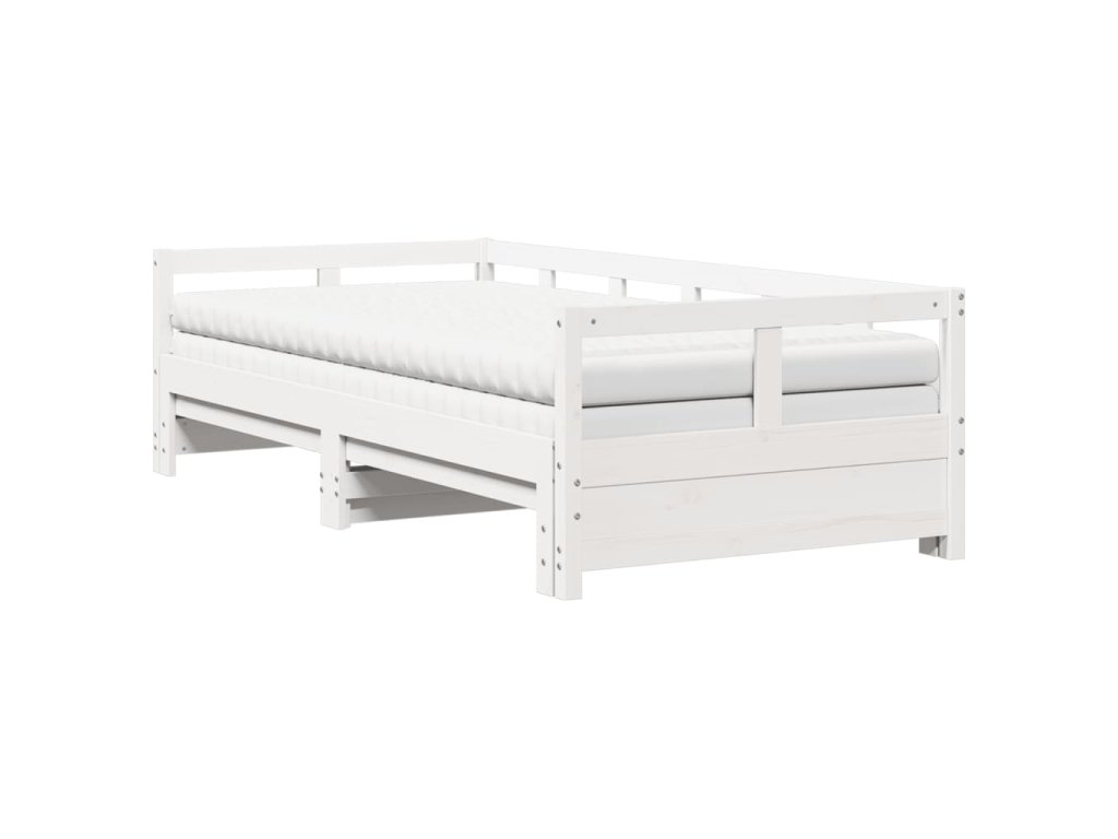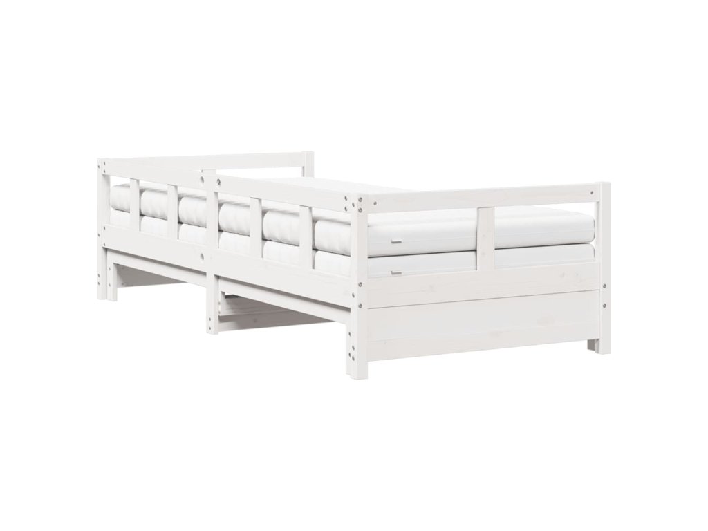 Multidom Vysúvacia denná posteľ s matracmi, biela 90x190 cm, borovica