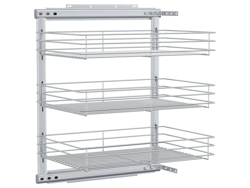 Náš vyťahovací drôtený kôš sa dá ľahko namontovať do kuchynskej skrinky pomocou pribaleného montážneho príslušenstva. Tri koše predstavujú jednoduché, ale praktické riešenie pre optimalizáciu úložného priestoru vo vašej kuchynskej skrinke.