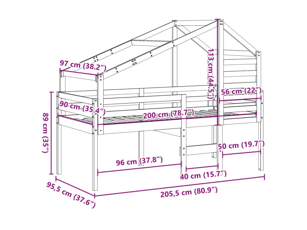 - Úplné využitie priestoru: Toto jednoposchodové lôžko je vyvýšené 78,5 cm nad zemou a poskytuje pod ním dostatok priestoru na skladovanie alebo iné aktivity. Táto plocha môže slúžiť na stohovanie úložných boxov, uloženie veľkých hračiek alebo dokonca umiestnenie detskej pohovky na čítanie. Vaše dieťa môže navyše využiť priestor pod dreveným rámom postele ako tajnú základňu a užiť si nápaditú hru.