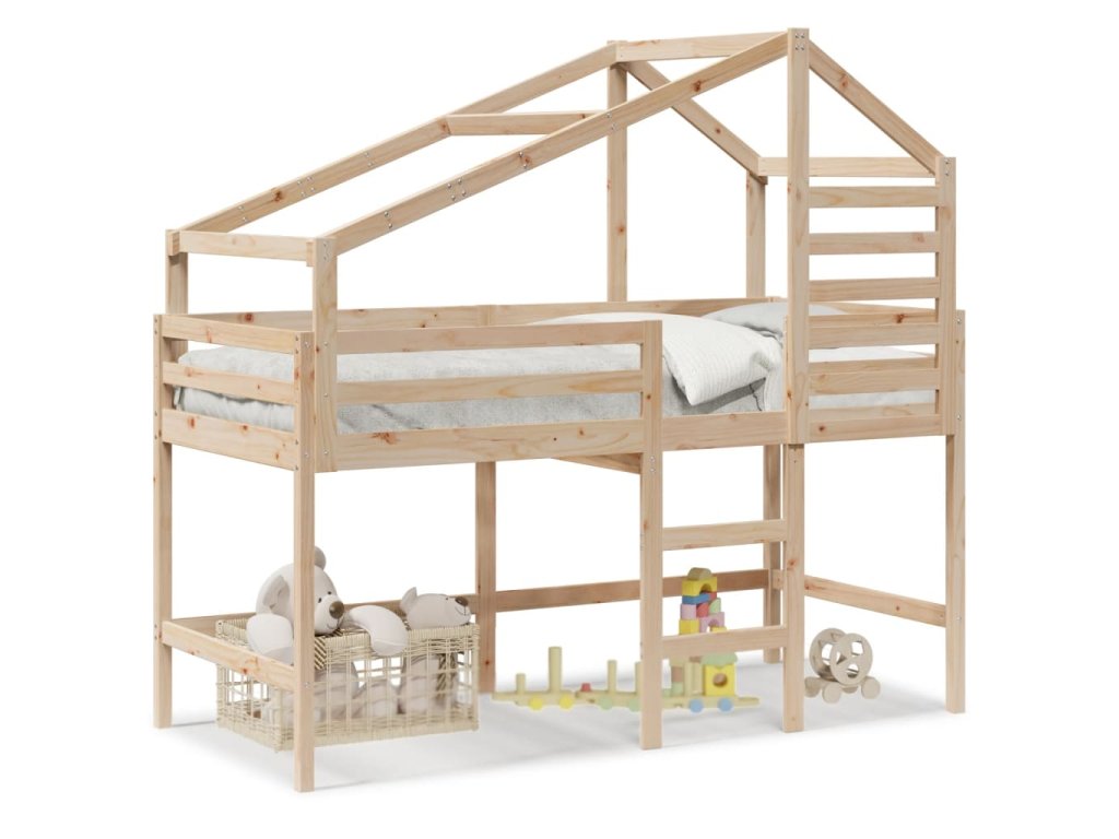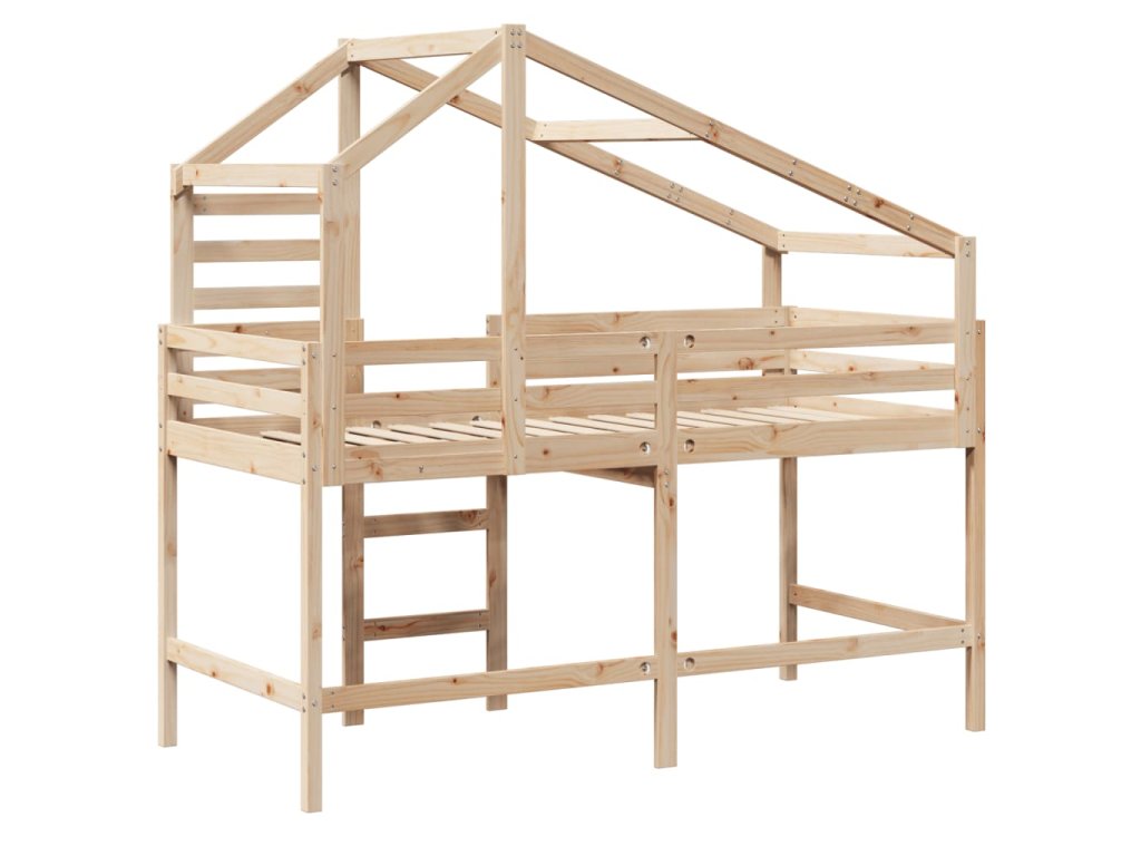 Táto detská poschodová posteľ je vyrobená z masívneho borovicového dreva a je určená na zábavu a optimalizáciu priestoru.