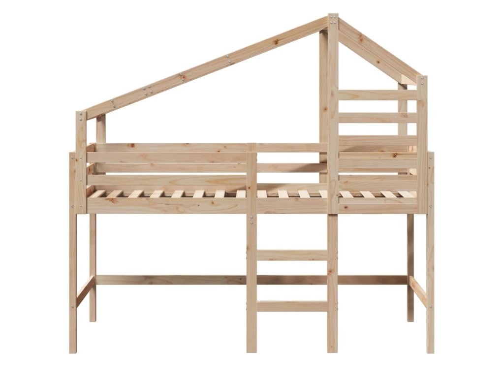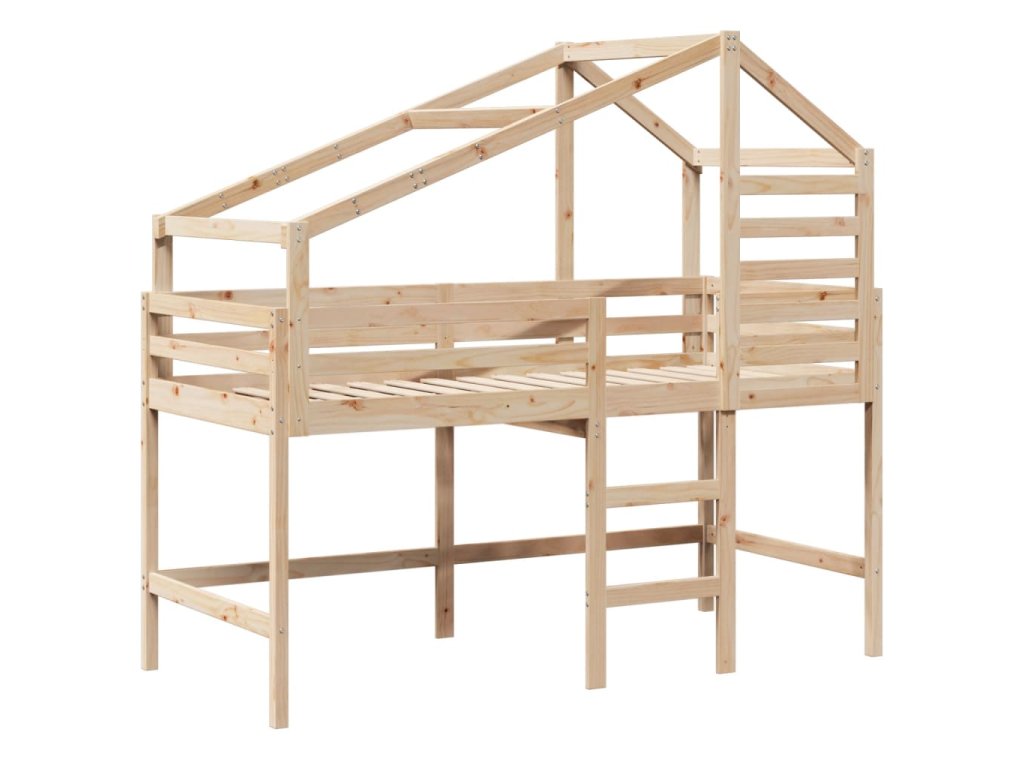 Multidom Vyvýšená posteľ rebrík strecha biela 90x200 cm masívna borovica