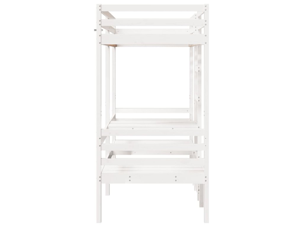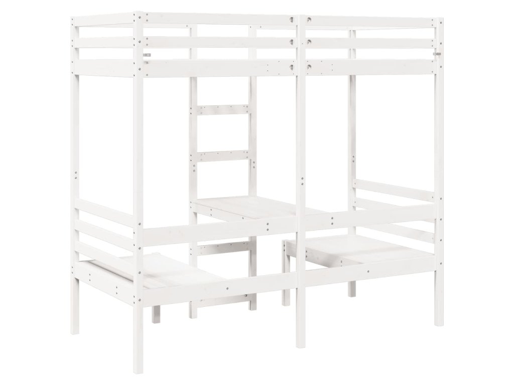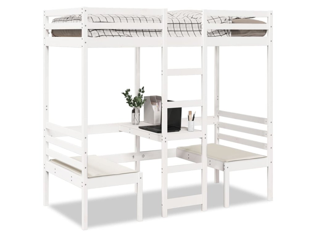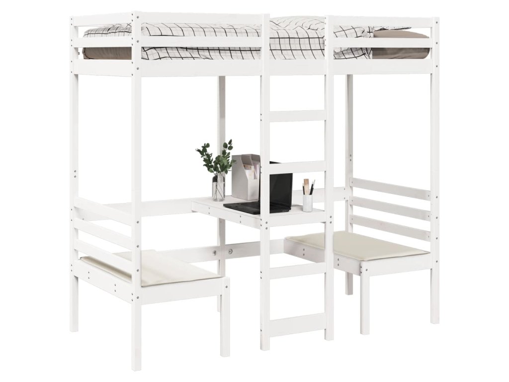 Multidom Vyvýšená posteľ+stôl, stoličky, biela 90x190cm borovicový masív