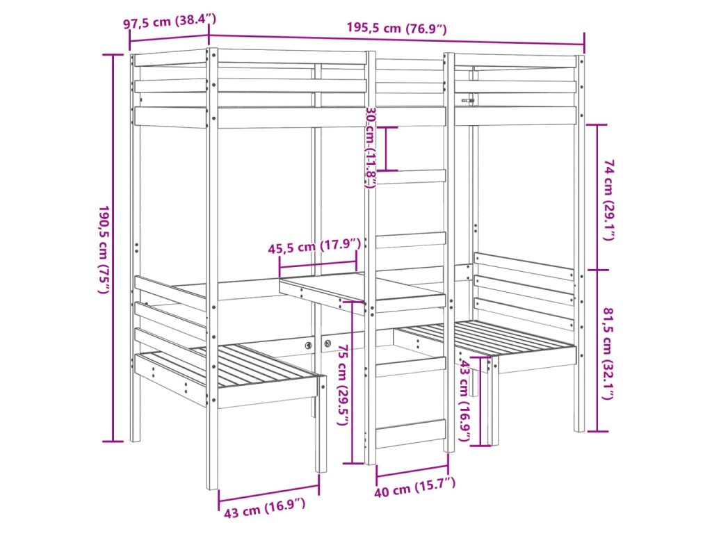 Táto všestranná vyvýšená posteľ kombinuje jednolôžkovú posteľ s písacím stolom a stoličkami, a tak poskytuje útulný priestor na spanie a priestrannú pracovnú plochu v jednom. Predstavuje ideálny doplnok do domácností s obmedzeným priestorom.