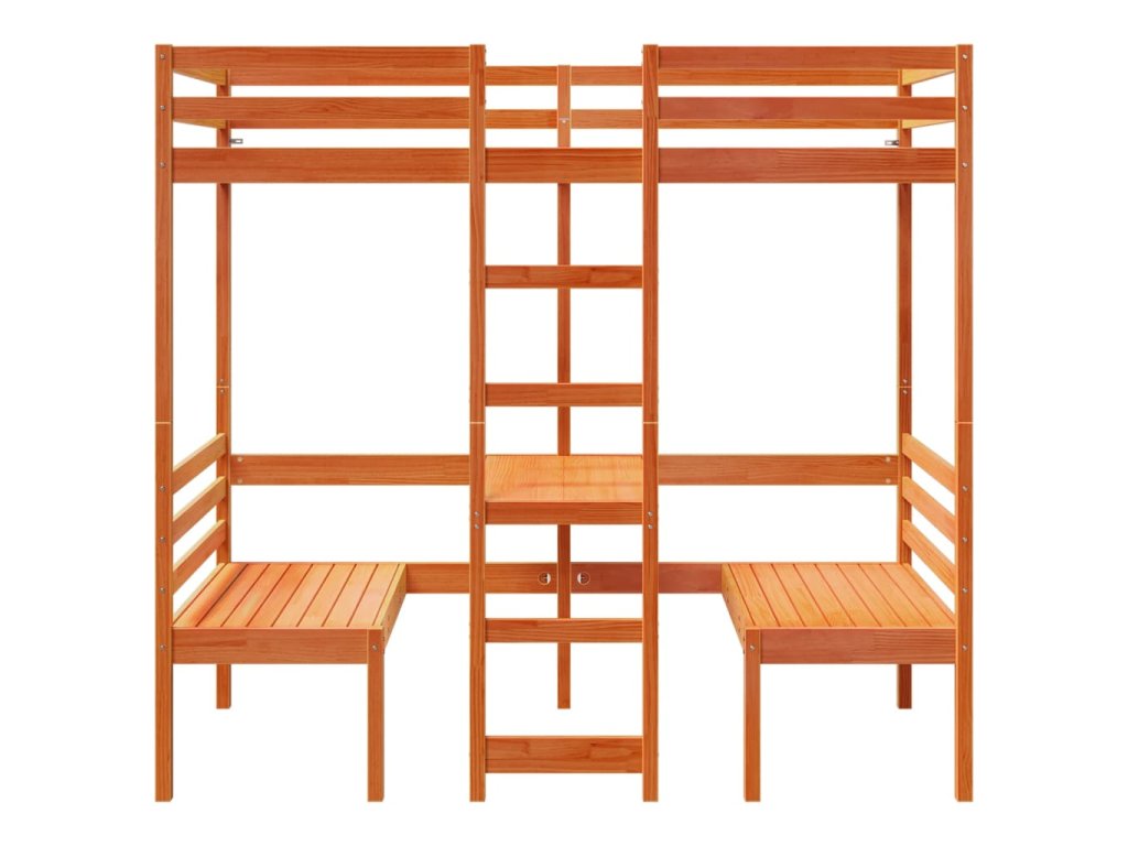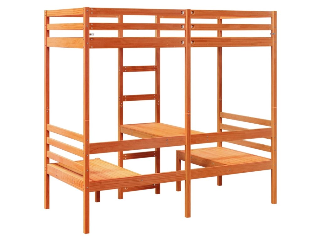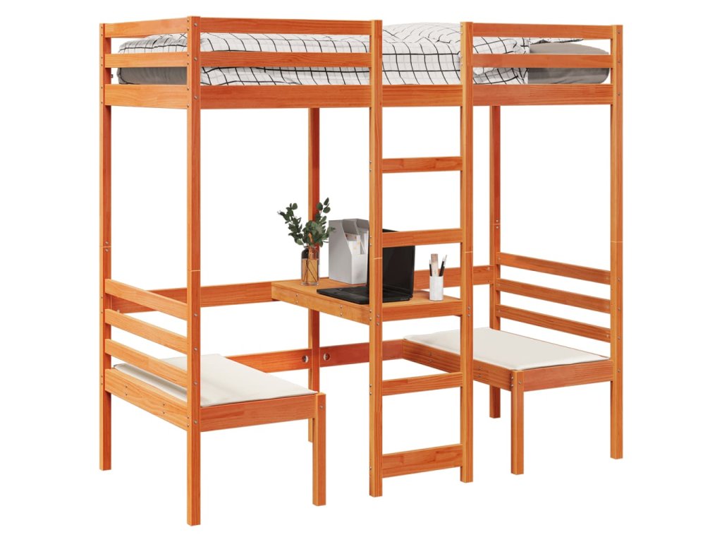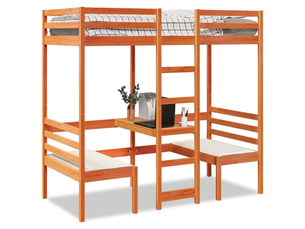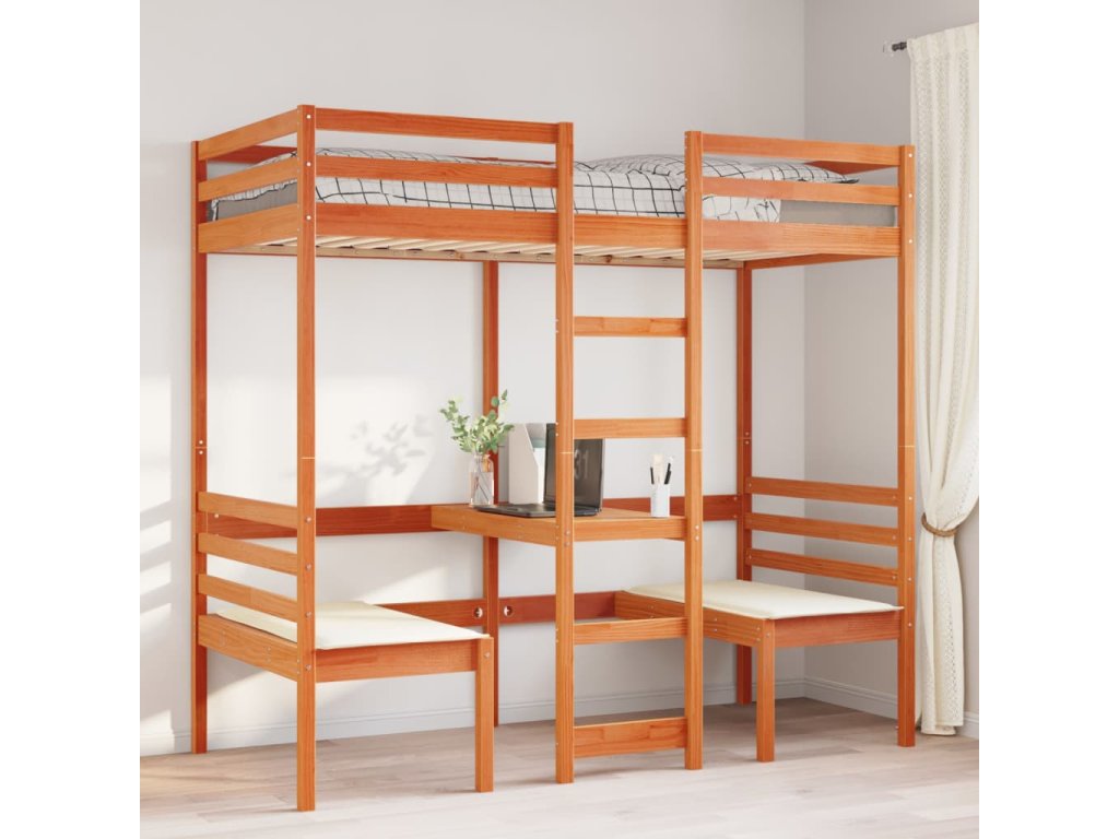 Multidom Vyvýšená posteľ+stôl, stoličky, hnedá 90x190cm borovicový masív