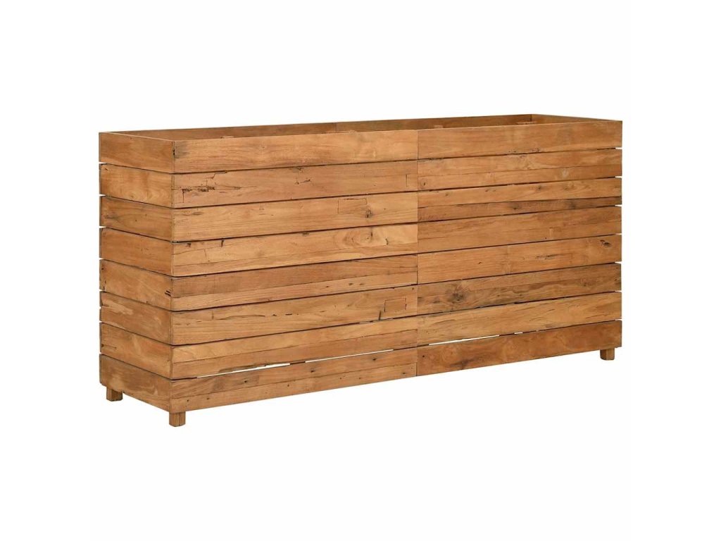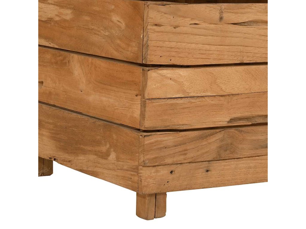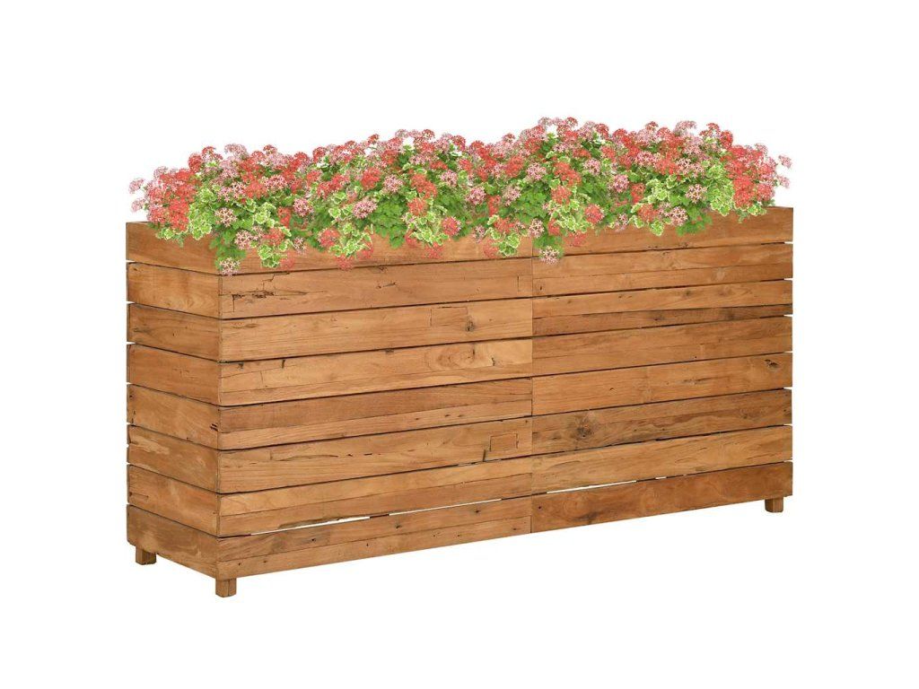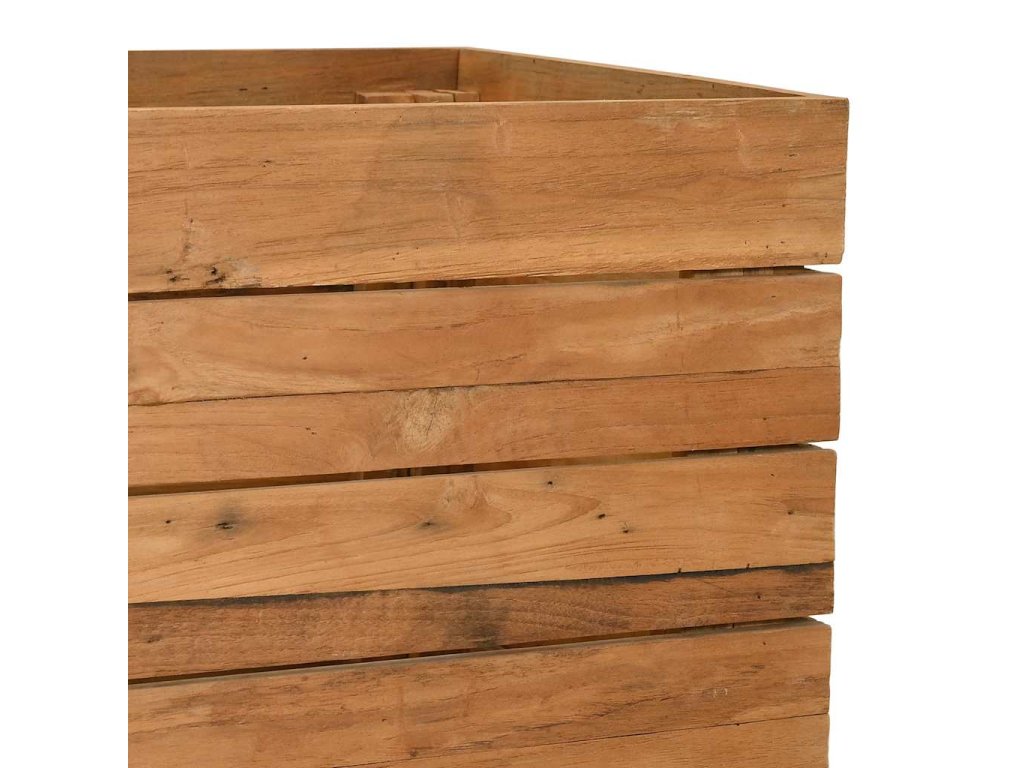 Tento kvetináč je vyrobený z recyklovaného tíkového dreva, vďaka čomu je naozaj robustný a trvácny. Vďaka krásnej textúre dreva je každý kus nábytku jedinečný a trochu odlišný od ostatných. Štyri drevené nohy v spodnej časti prinášajú mimoriadnu stabilitu. Spodná časť kvetináča obsahuje oceľový držiak, ktorý sa dá upevniť do 2 úrovní, aby ste mohli kvetináče umiestniť do vhodnej výšky. Výrobok sa okrem toho jednoducho montuje.