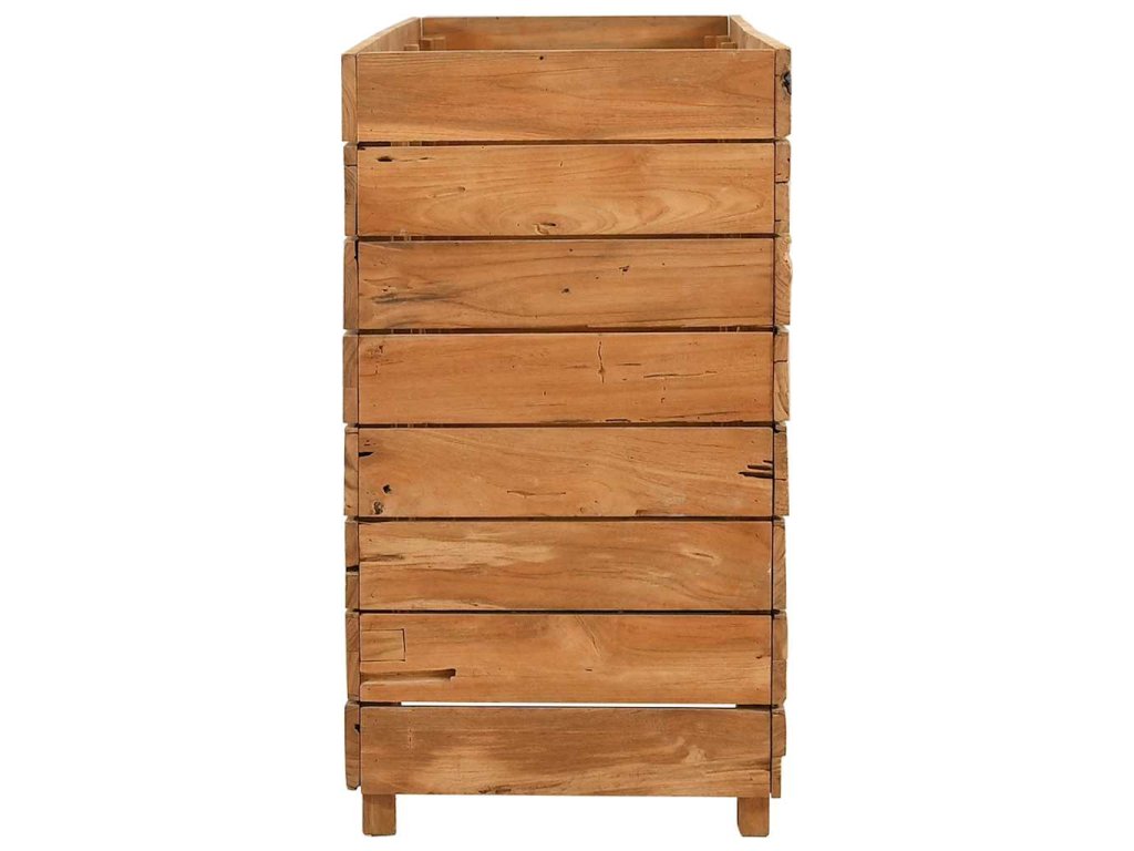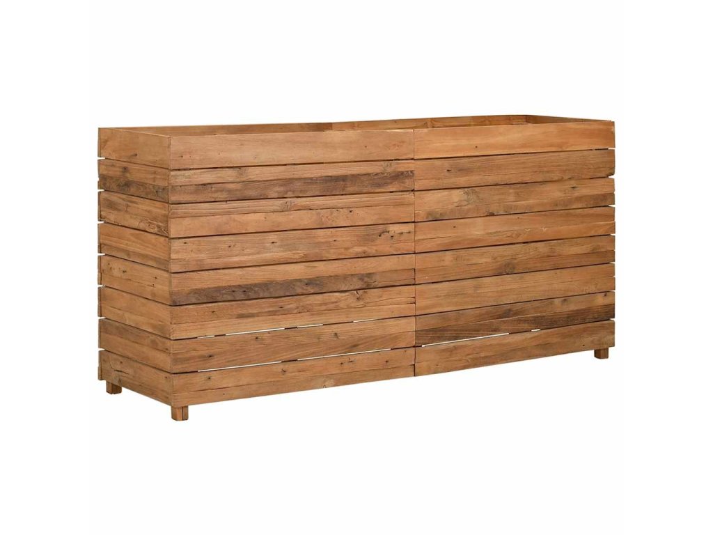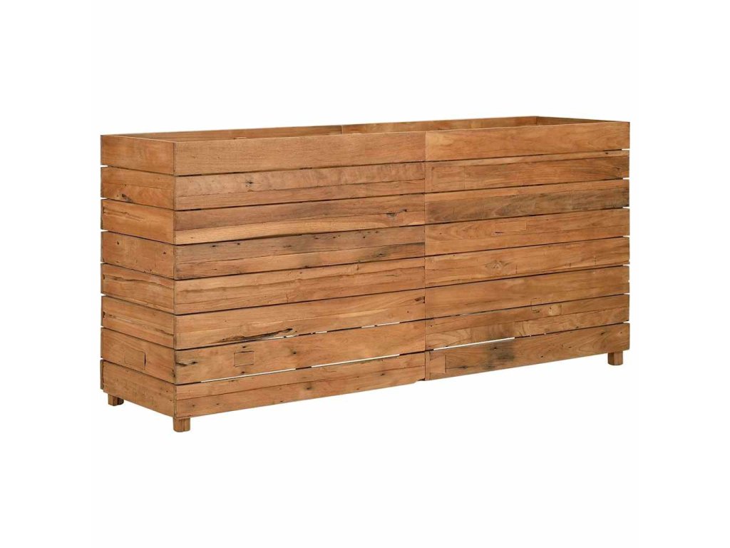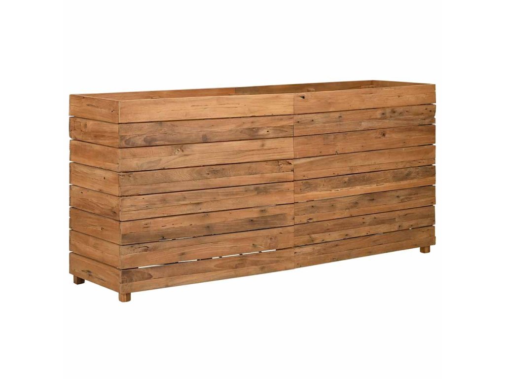 Tento kvetináč je vyrobený z recyklovaného tíkového dreva, vďaka čomu je naozaj robustný a trvácny. Vďaka krásnej textúre dreva je každý kus nábytku jedinečný a trochu odlišný od ostatných. Štyri drevené nohy v spodnej časti prinášajú mimoriadnu stabilitu. Spodná časť kvetináča obsahuje oceľový držiak, ktorý sa dá upevniť do 2 úrovní, aby ste mohli kvetináče umiestniť do vhodnej výšky. Výrobok sa okrem toho jednoducho montuje.